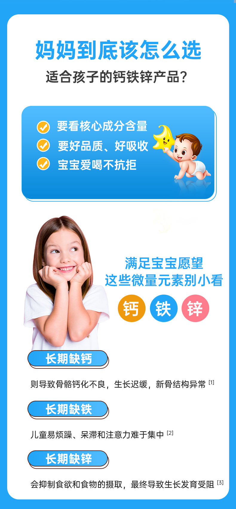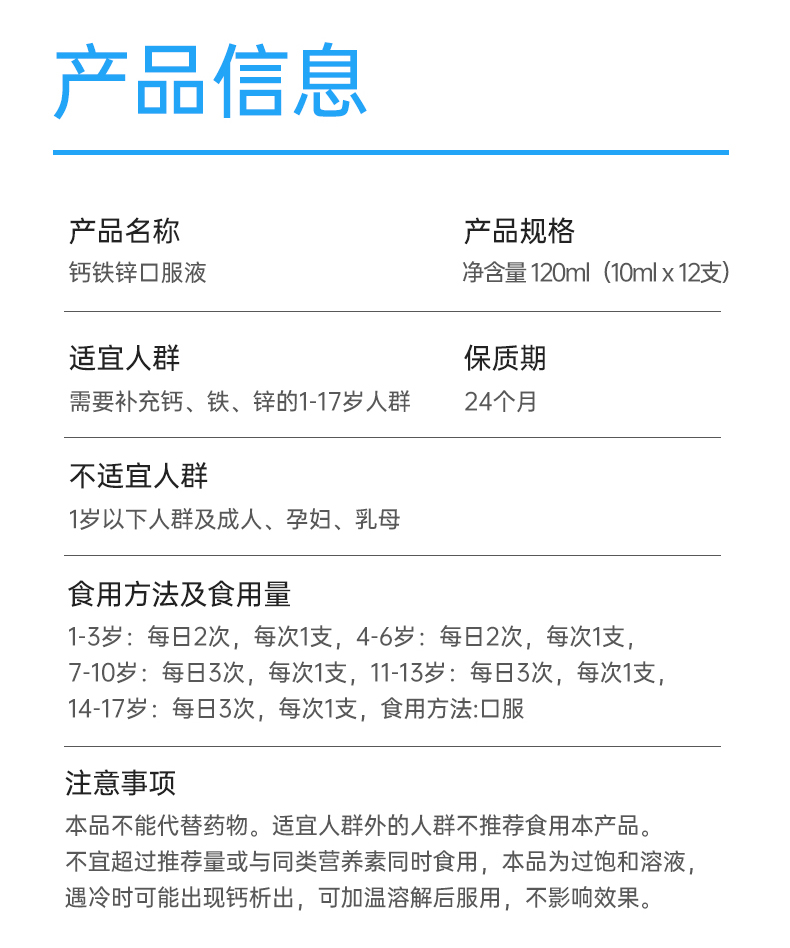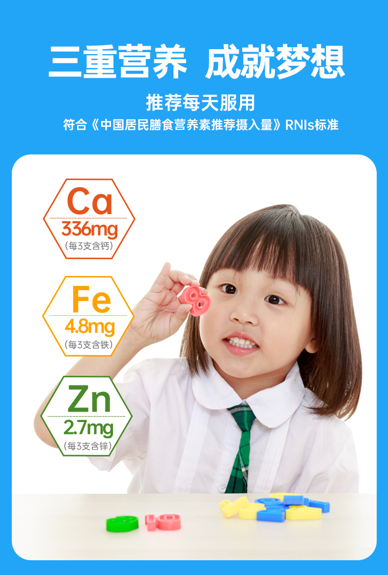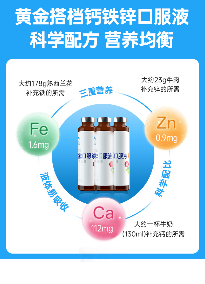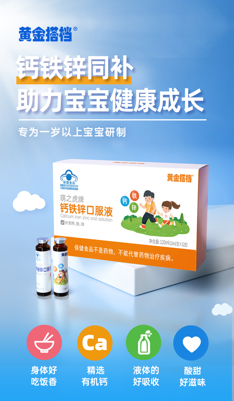 黄金搭档钙铁锌口服液儿童补钙补锌补铁促进生长发育改善厌食挑食