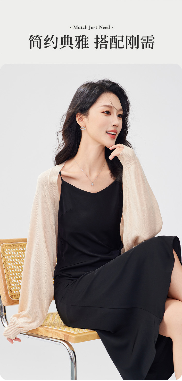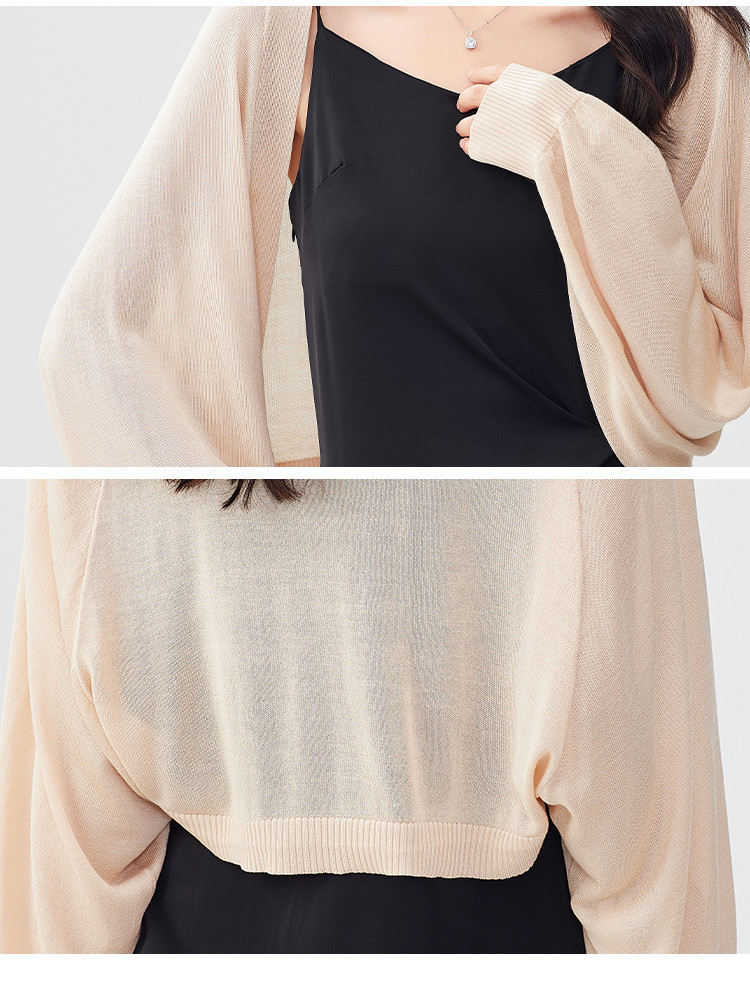 商品名称:【含桑蚕丝含莱赛尔】短款小个子披肩外搭长袖针织外套女上衣 254111
