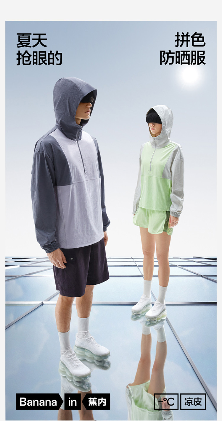 凉皮502UV男女同款半拉链拼色防晒服凉感透气机能户外防晒衣 573573