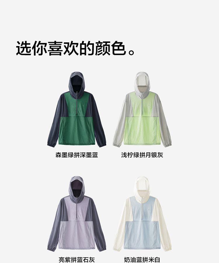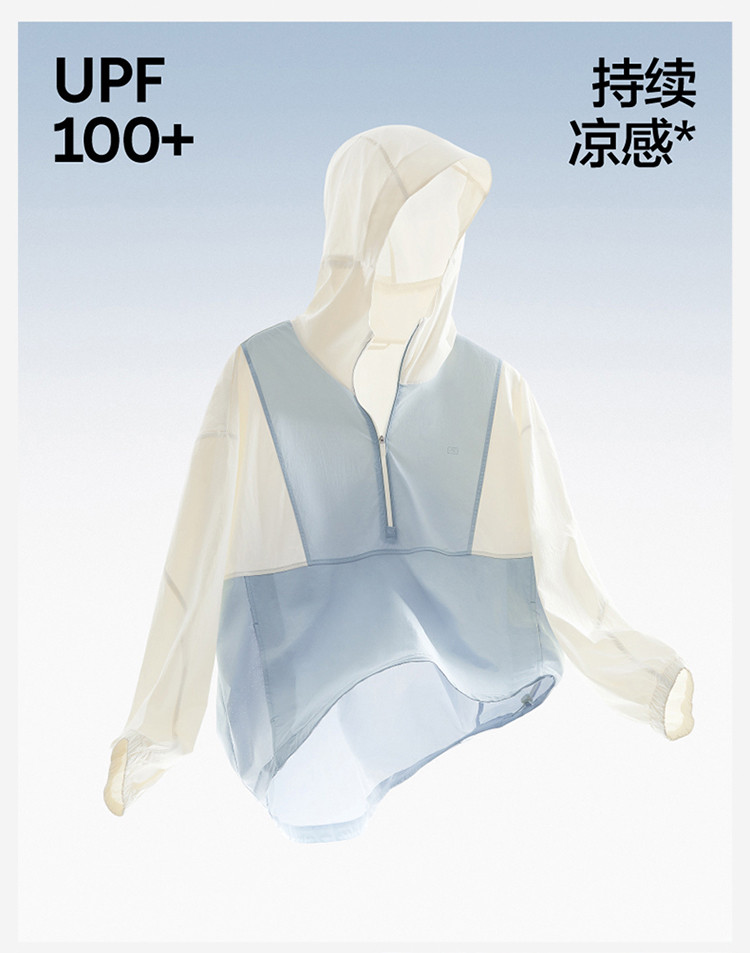 商品名称:凉皮502UV男女同款半拉链拼色防晒服凉感透气机能户外防晒衣 573573