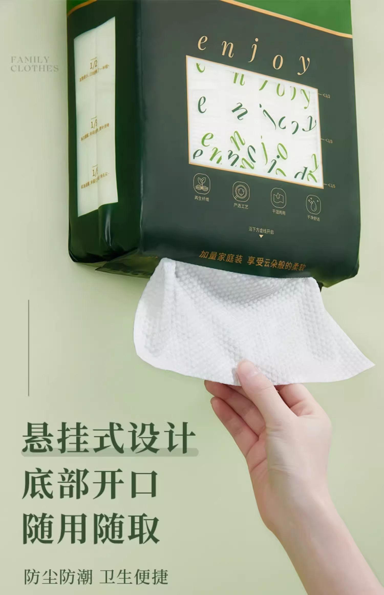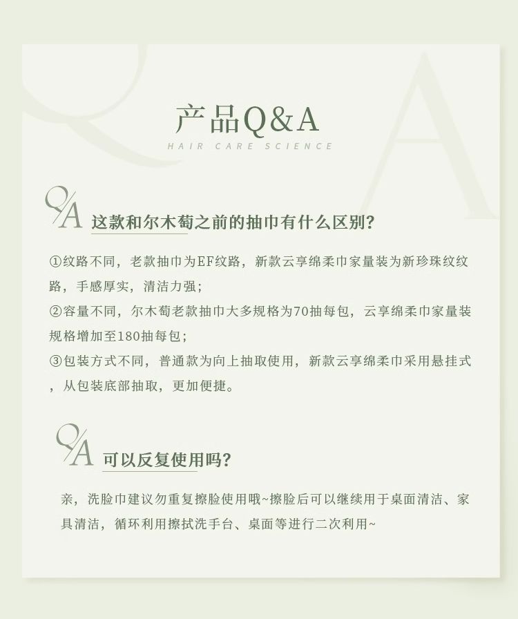 商品名称:尔木萄家庭装量贩装洗脸巾悬挂抽取式加大加厚一次性云享绵柔巾大容量
