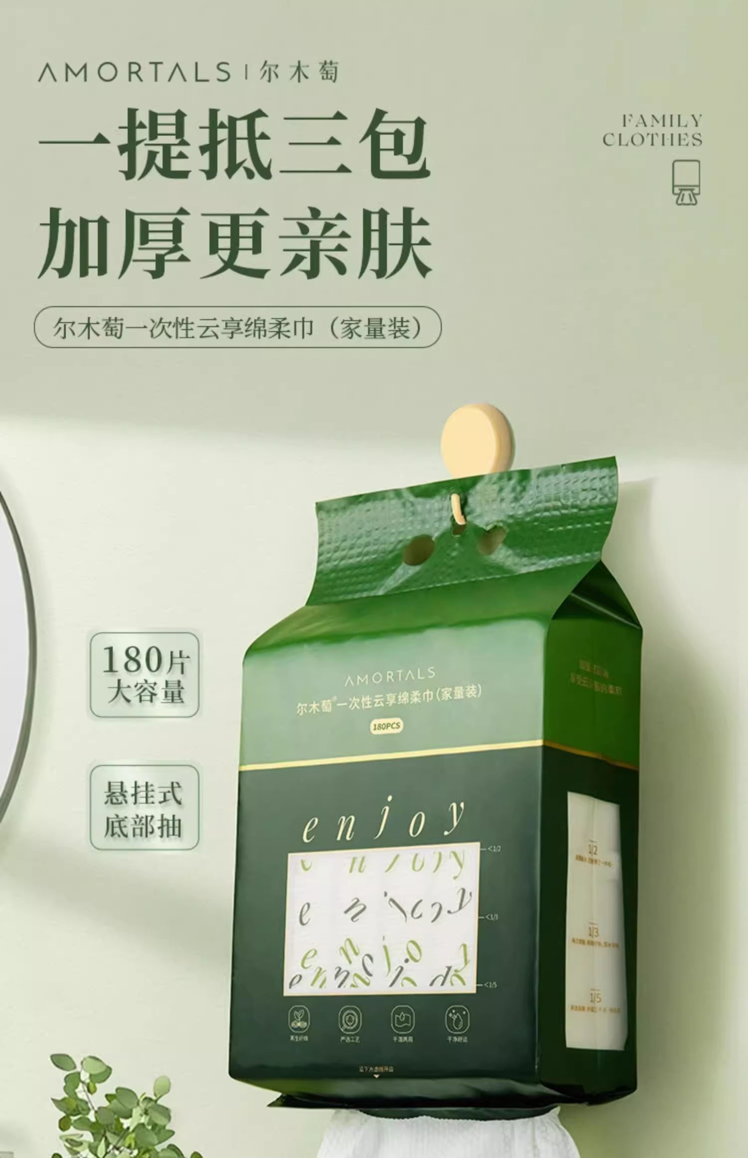 尔木萄家庭装量贩装洗脸巾悬挂抽取式加大加厚一次性云享绵柔巾大容量