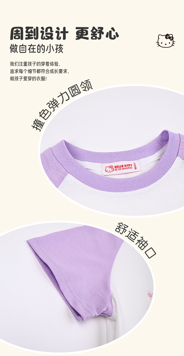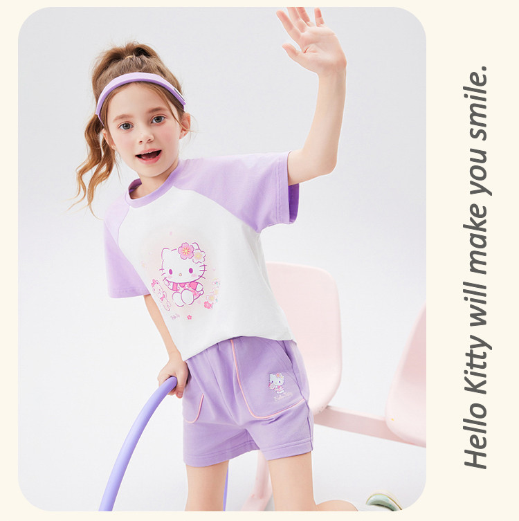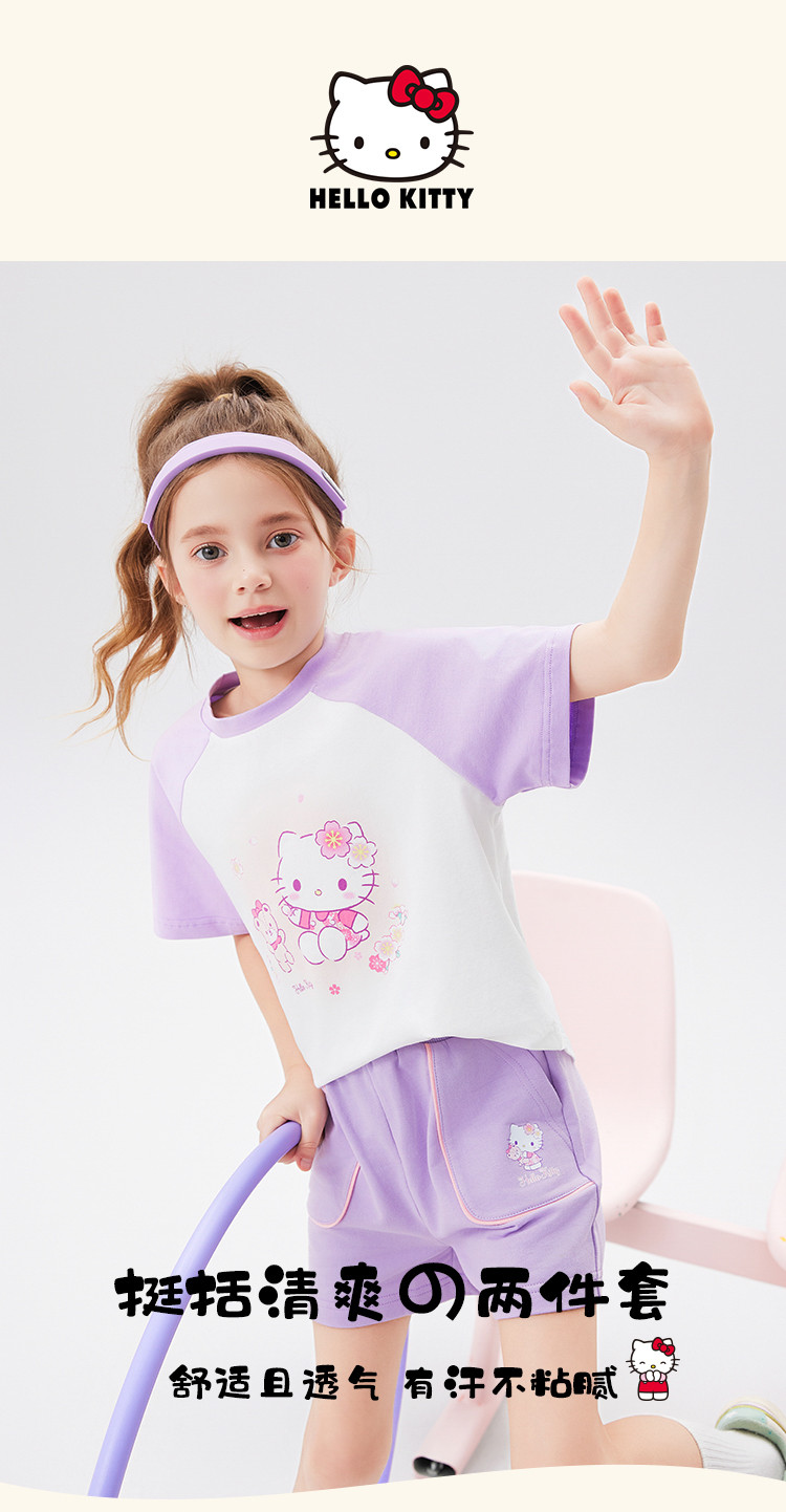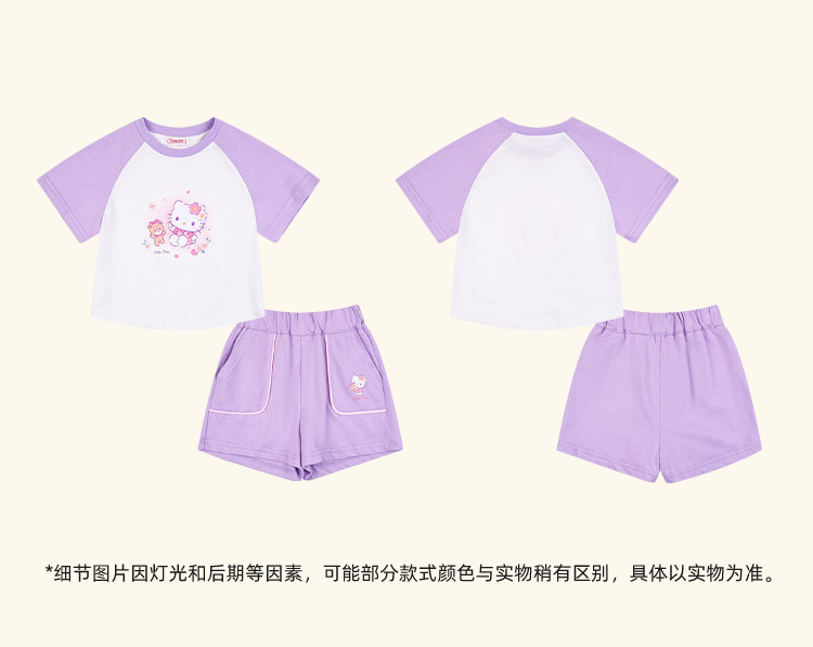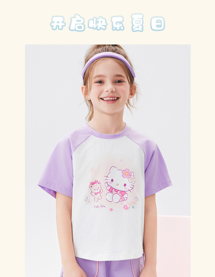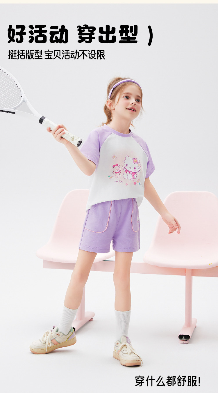 商品名称:女童夏季套装2025款撞色圆领卡通印花上衣元气撞色口袋裤套装 438494
