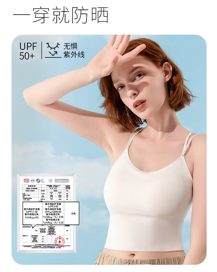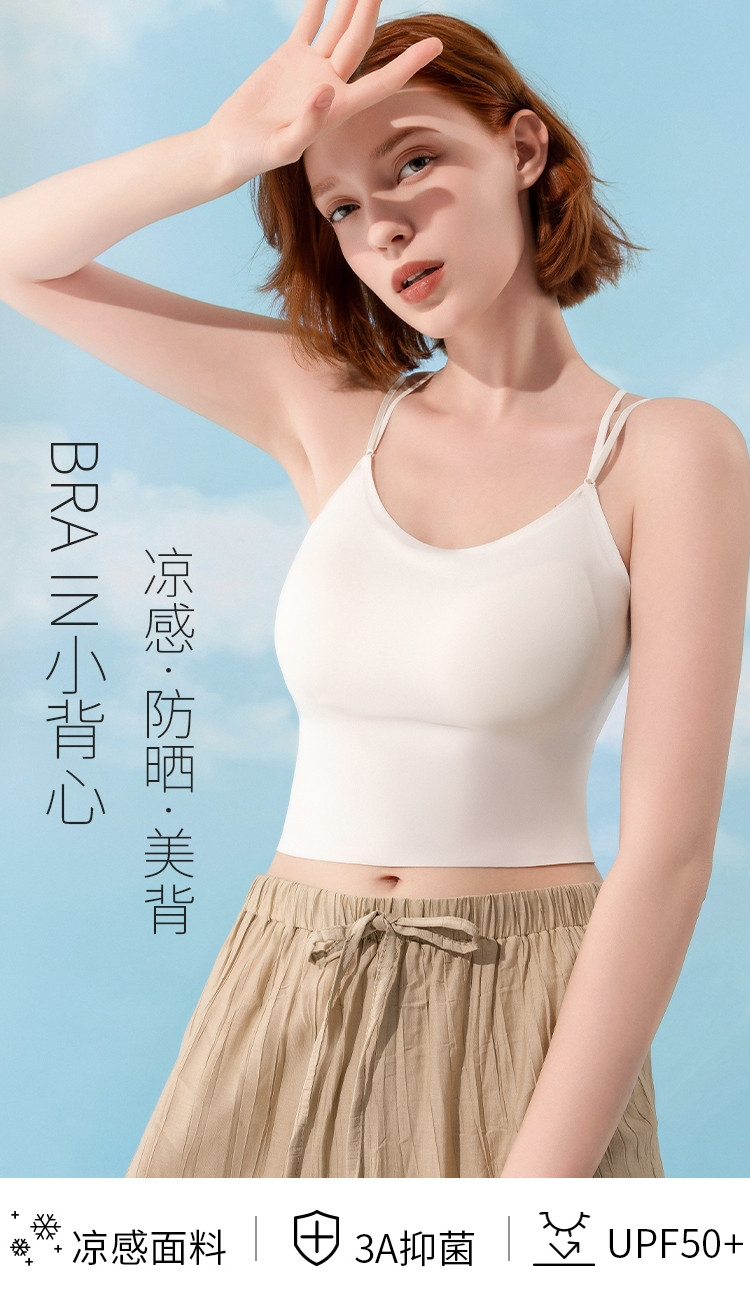 商品名称:凉感防晒3A抑菌无痕免穿文胸女打底吊带背心 653445