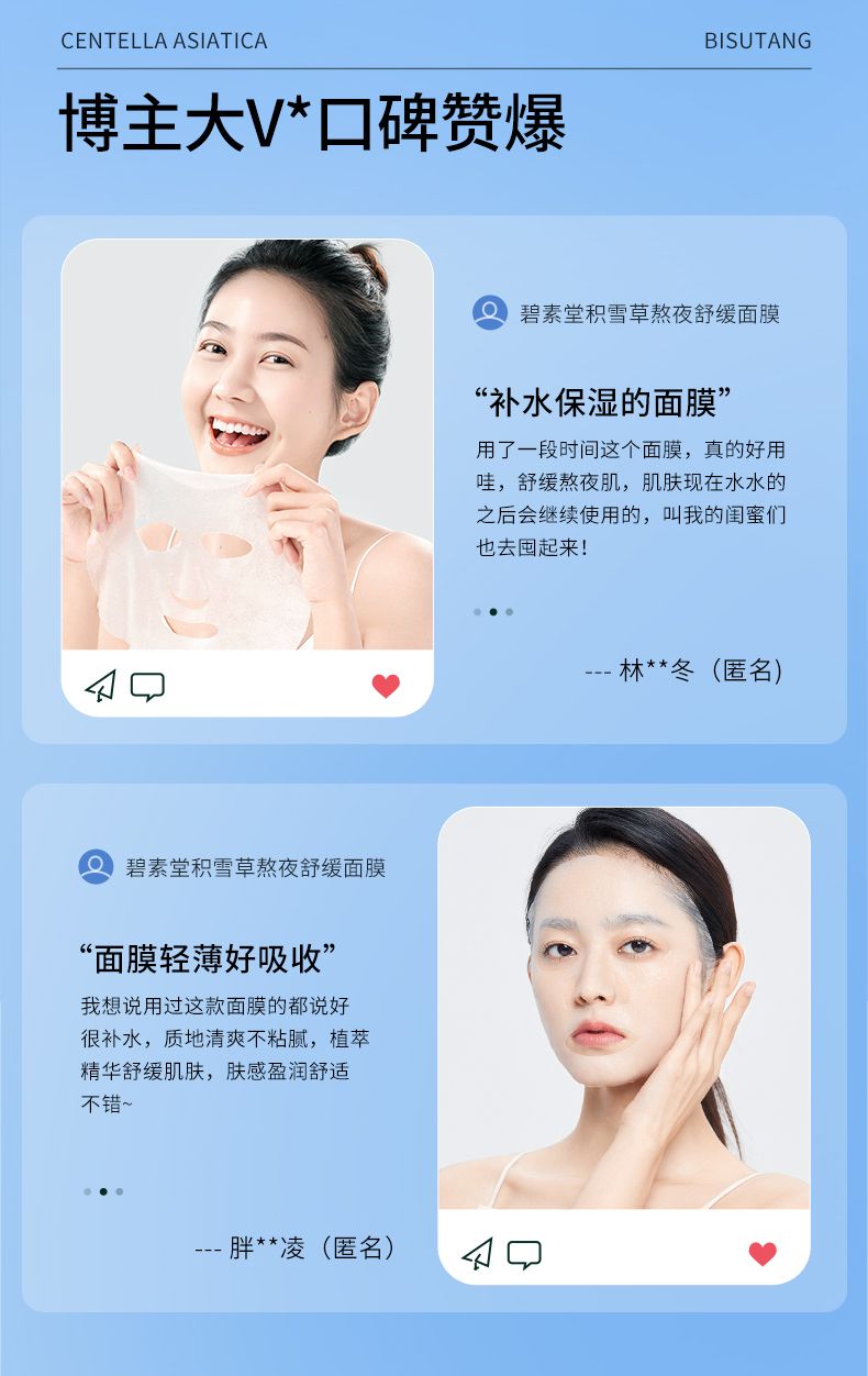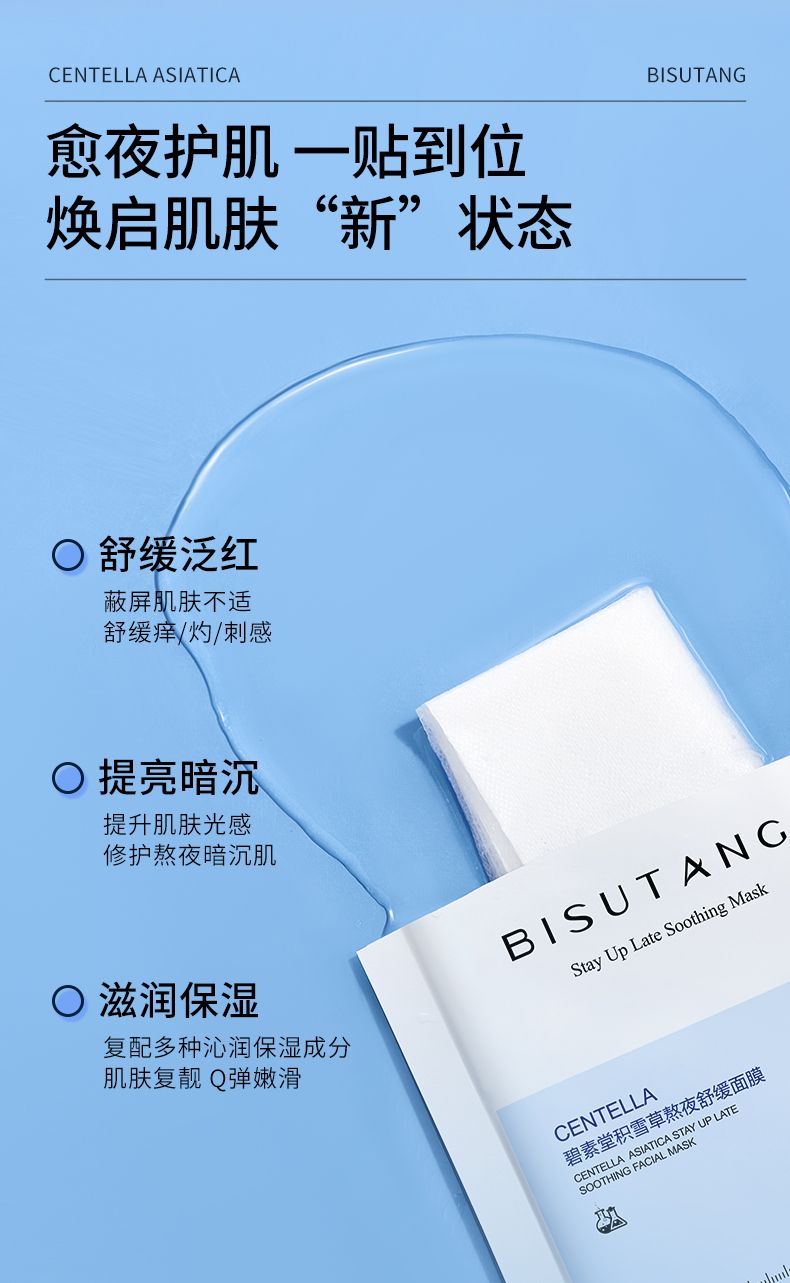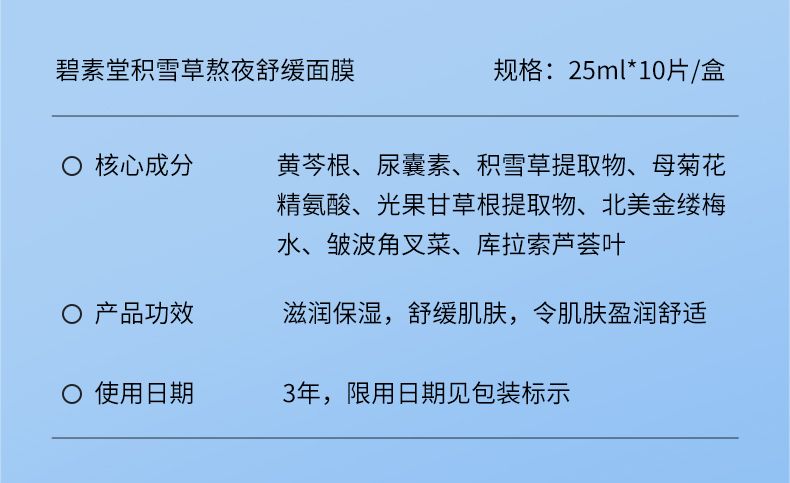 商品名称:碧素堂积雪草熬夜舒缓面膜10片/盒