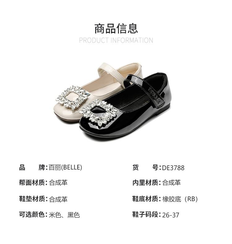 商品名称:【闪钻方扣时装鞋】开学季春款女童皮鞋简约方头表演鞋儿童单鞋 713035
