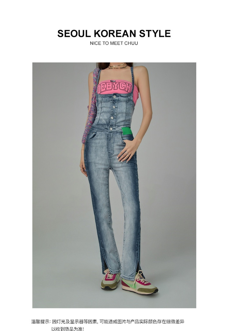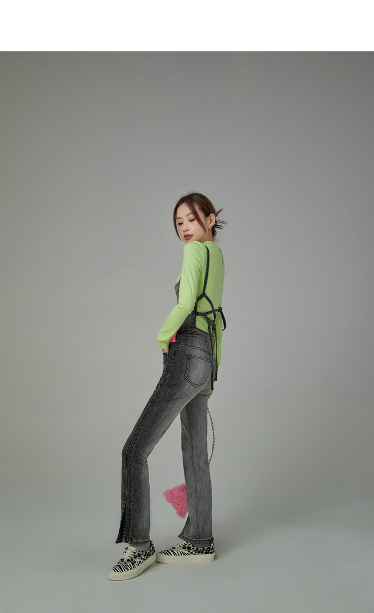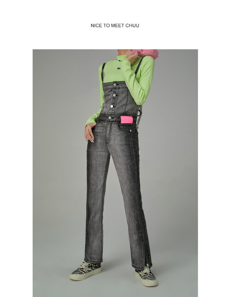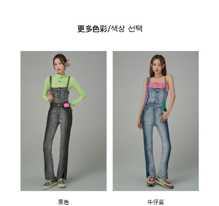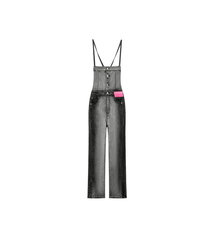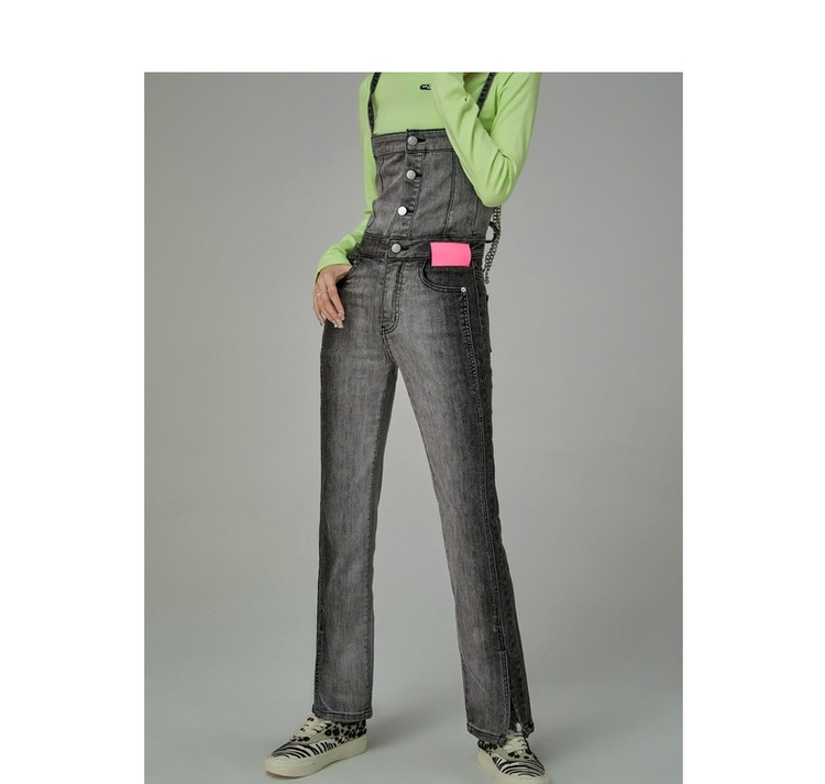 商品名称:甜辣性感露背背带牛仔裤女春秋时尚潮黑灰渐变长裤子 395411