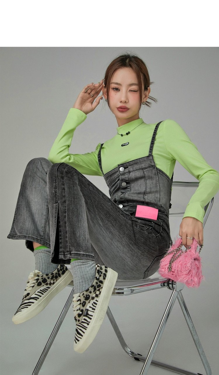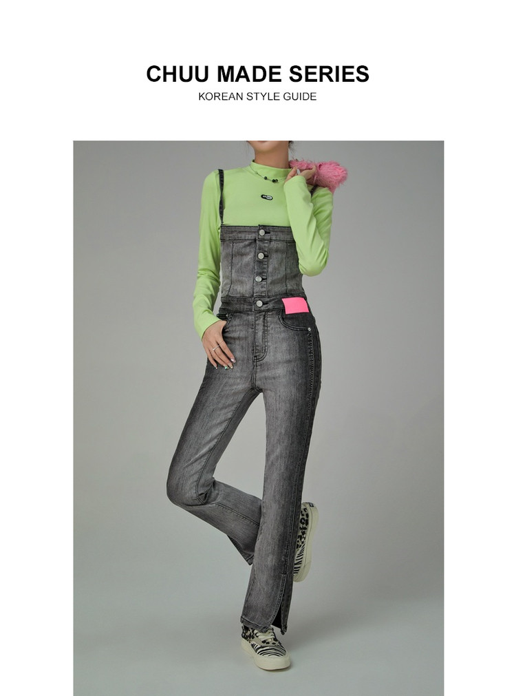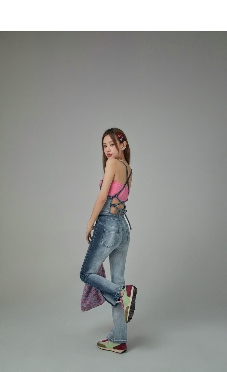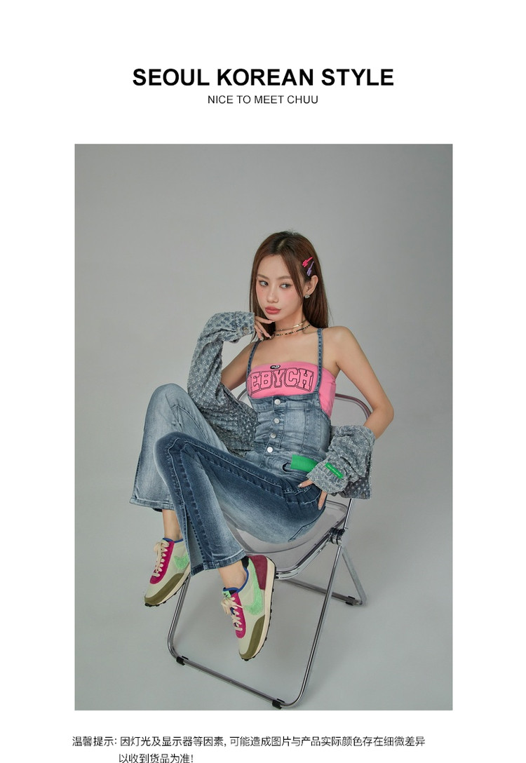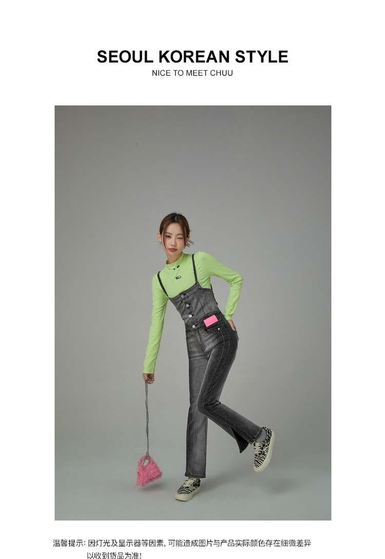 商品名称:甜辣性感露背背带牛仔裤女春秋时尚潮黑灰渐变长裤子 395411