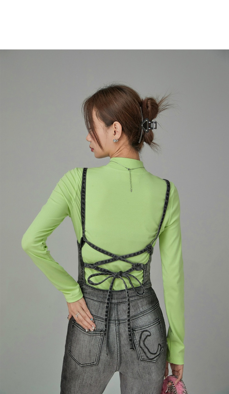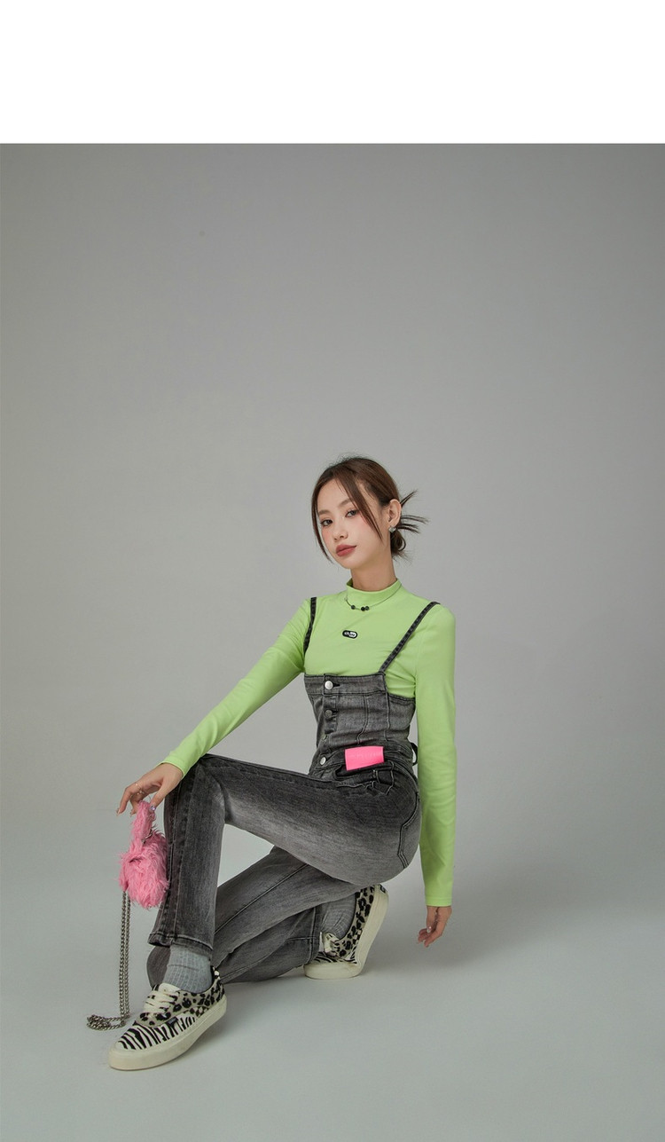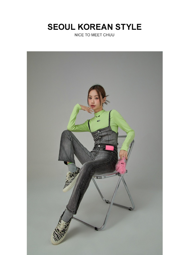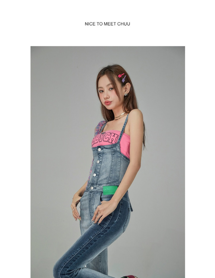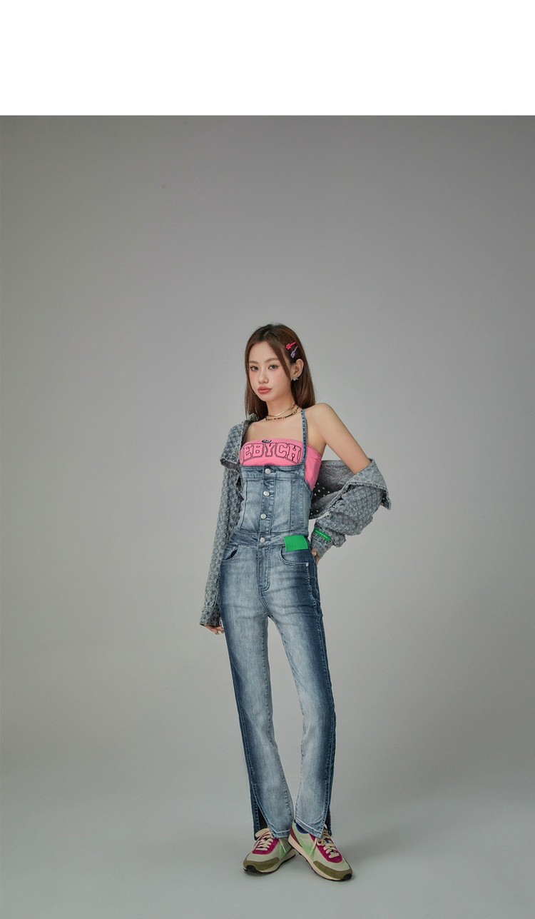 商品名称:甜辣性感露背背带牛仔裤女春秋时尚潮黑灰渐变长裤子 395411