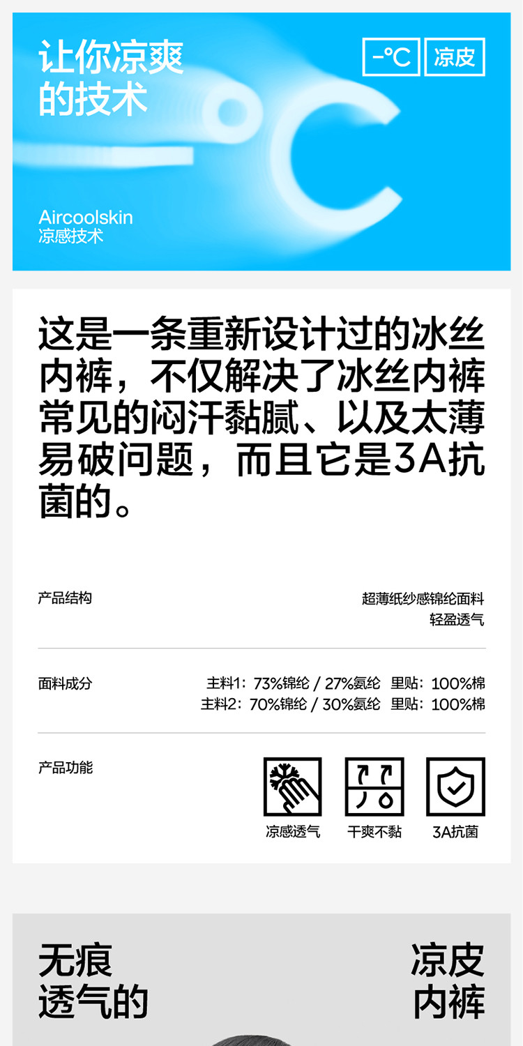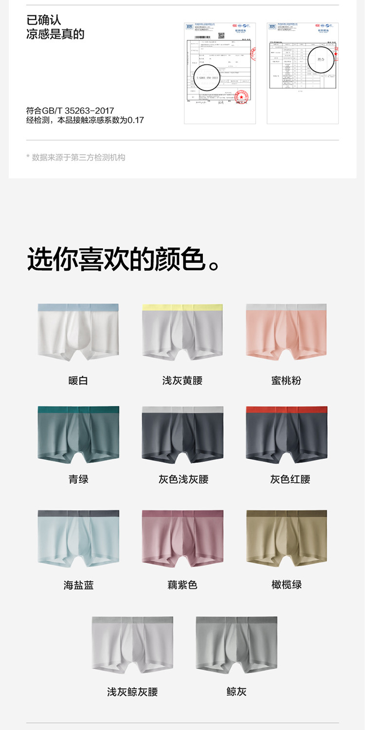 商品名称:凉皮301A凉感男士平角内裤6条装透气薄款运动轻薄夏季 488453