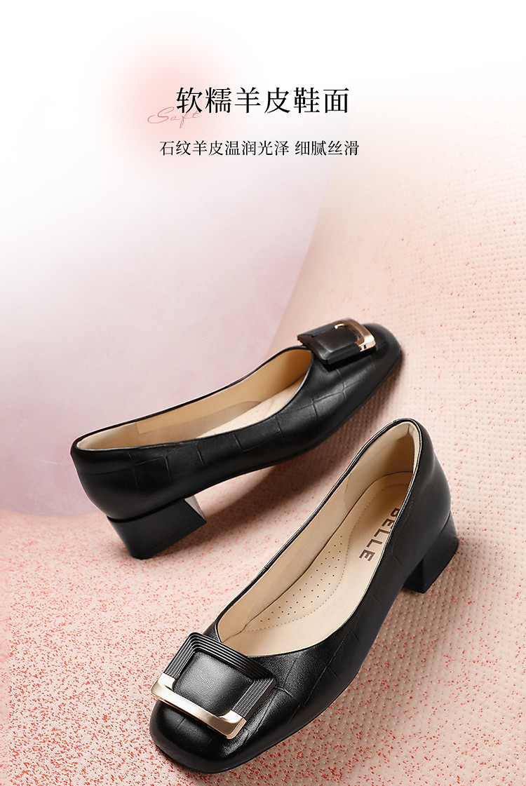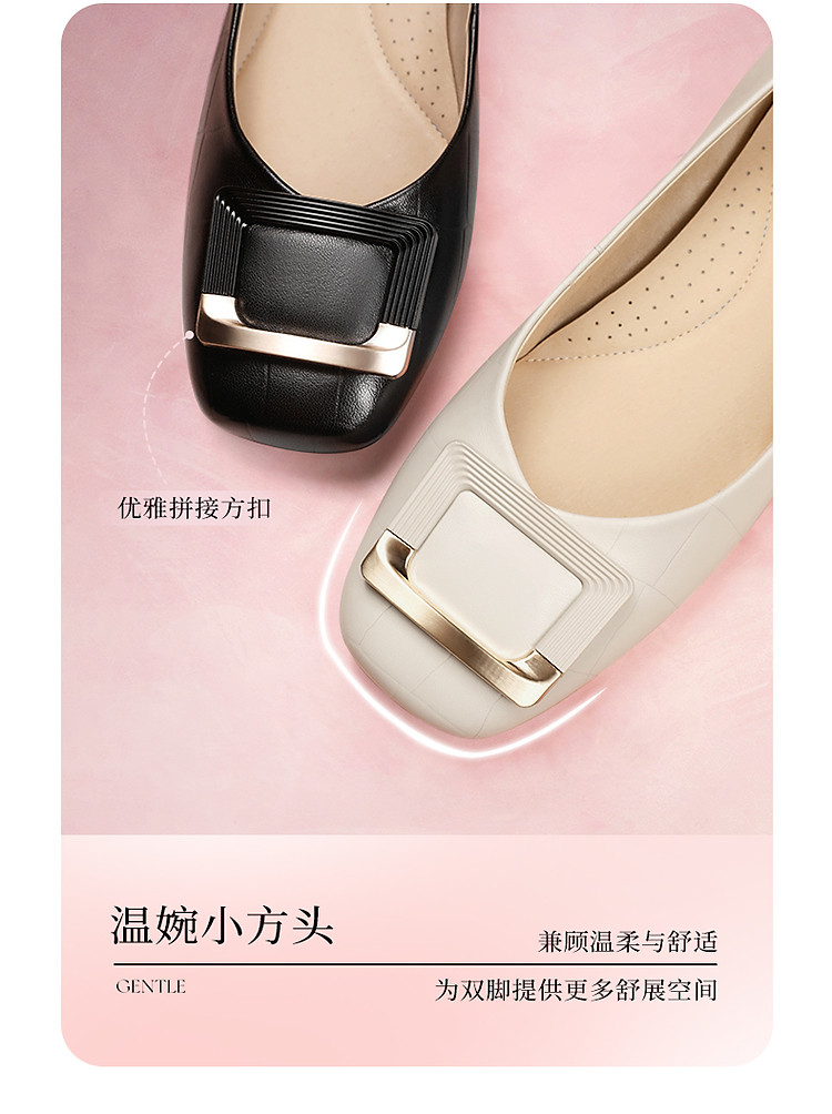 商品名称:百丽女鞋方扣粗跟高跟鞋晚晚鞋法式上班穿不累脚单鞋 050330