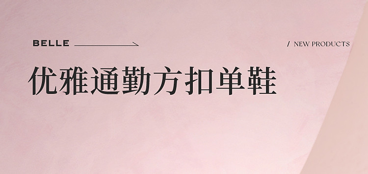 百丽女鞋方扣粗跟高跟鞋晚晚鞋法式上班穿不累脚单鞋 050330