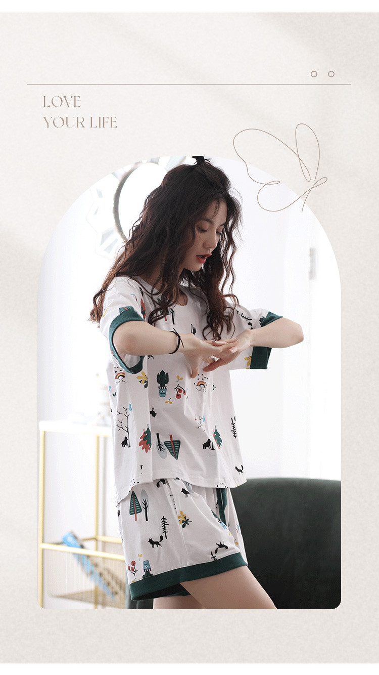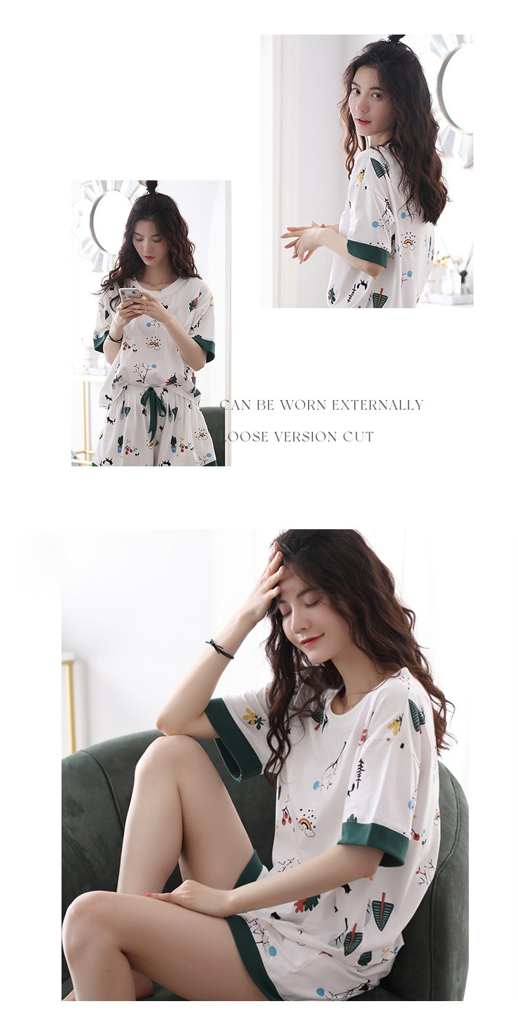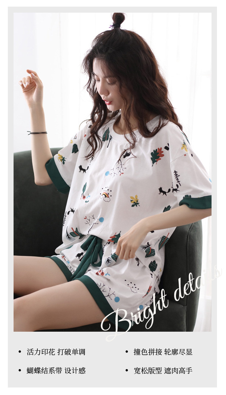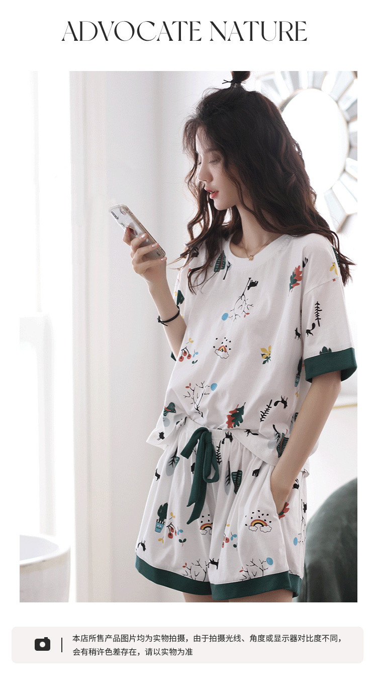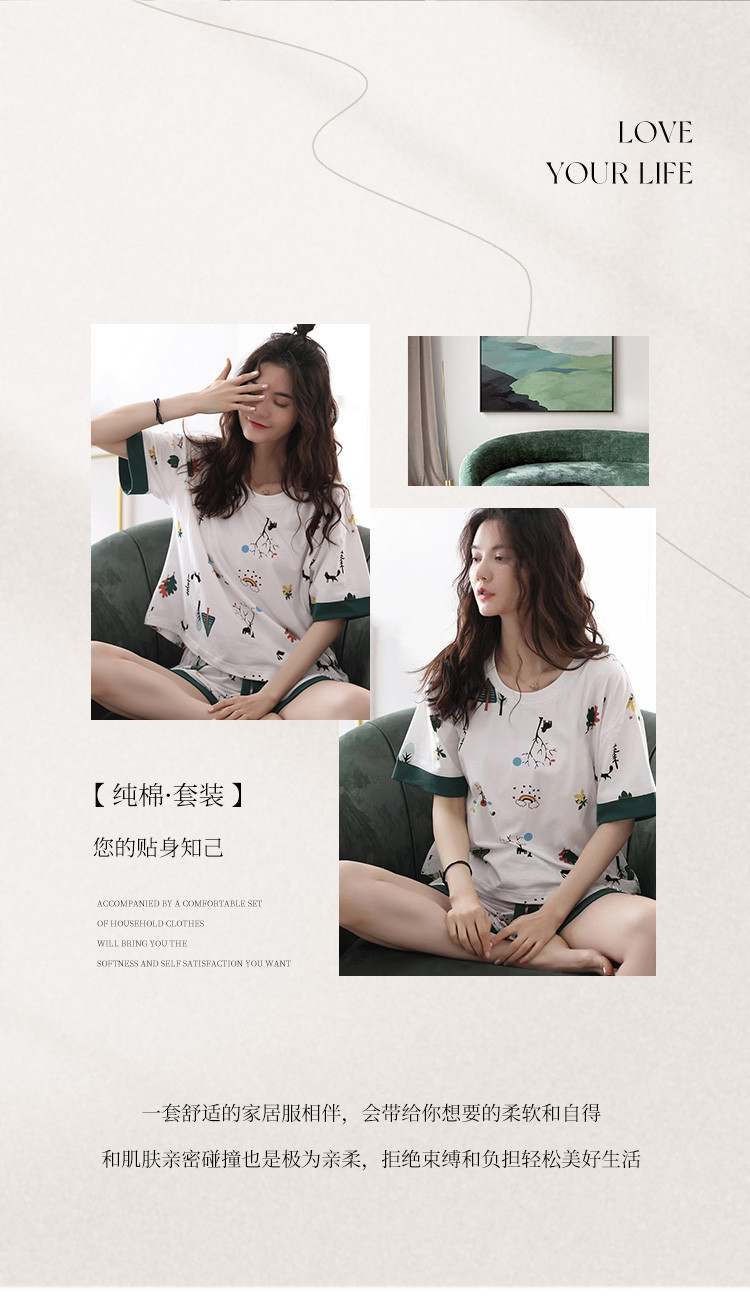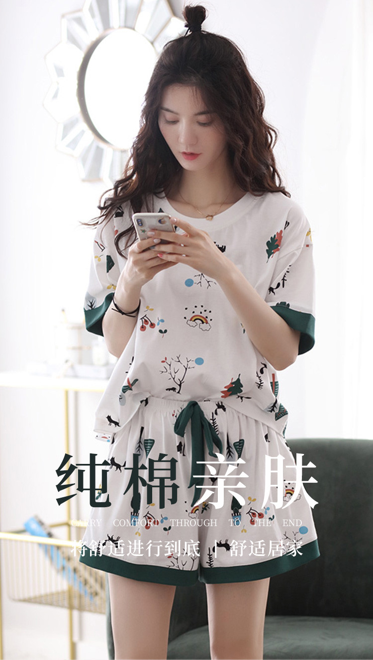 【100%棉】亲肤纯棉睡衣女士夏款甜美短袖家居服套装可外穿 672651