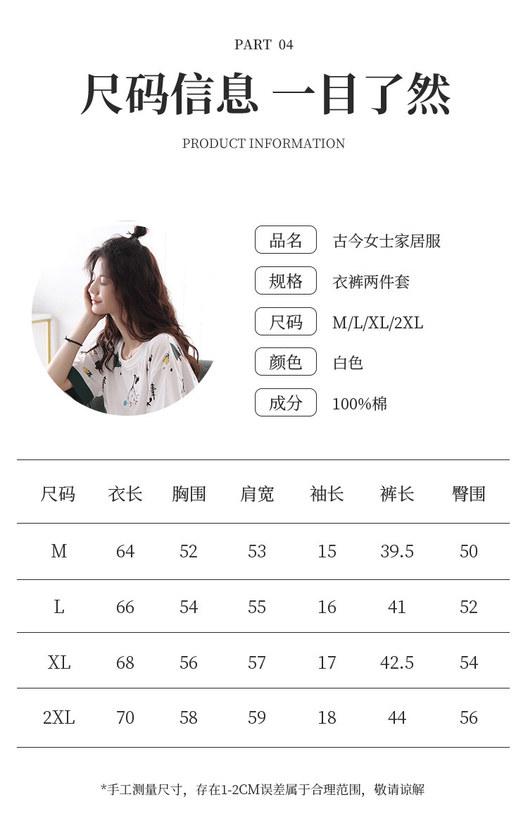 商品名称:【100%棉】亲肤纯棉睡衣女士夏款甜美短袖家居服套装可外穿 672651
