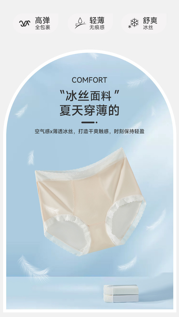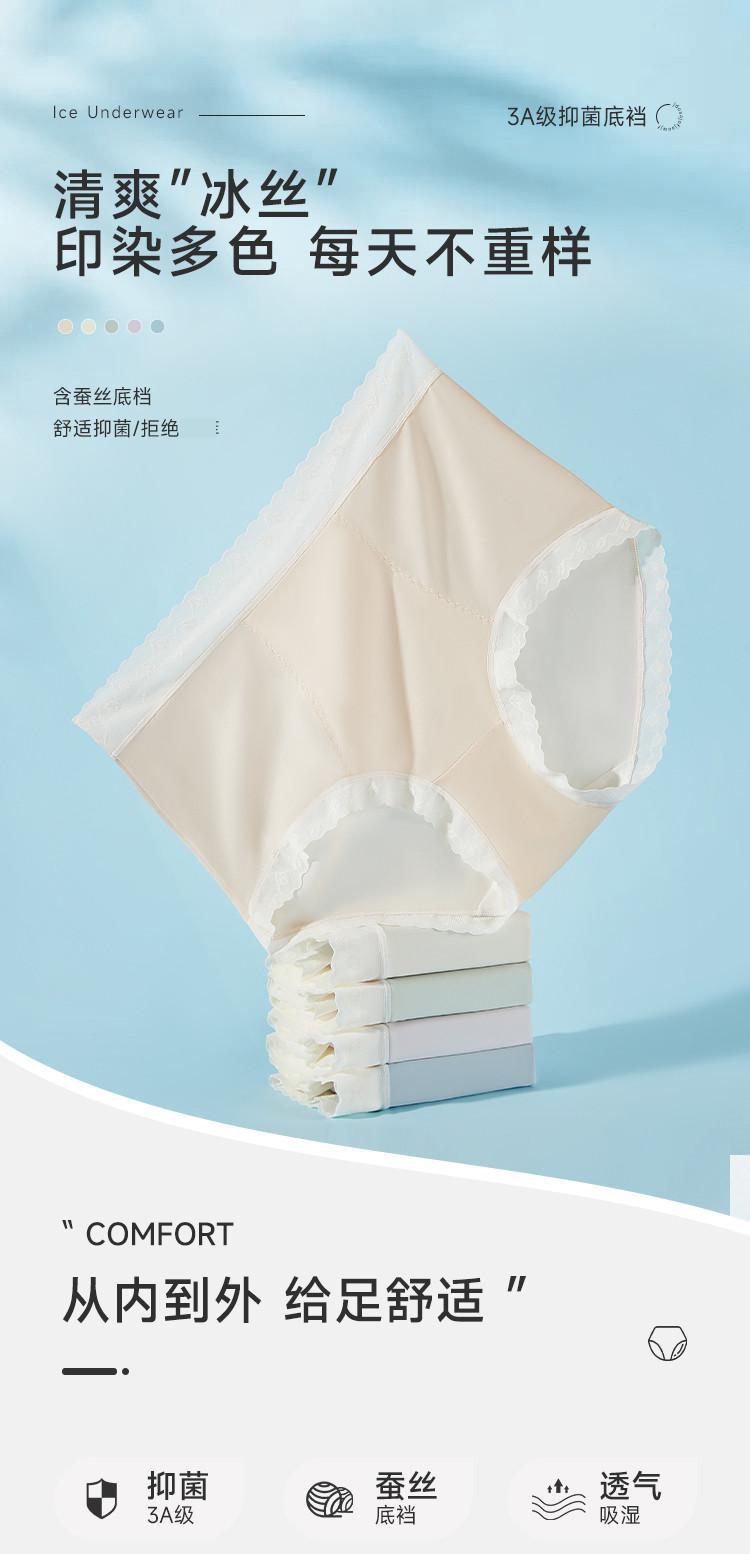 商品名称:【含蚕丝3A抑菌裆】5条中高腰冰丝女士内裤女性感纯欲蕾丝 567051