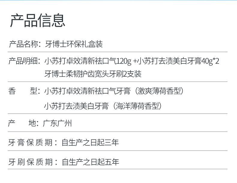 商品名称:牙博士 环保5件套礼盒(清新版)小苏打牙膏