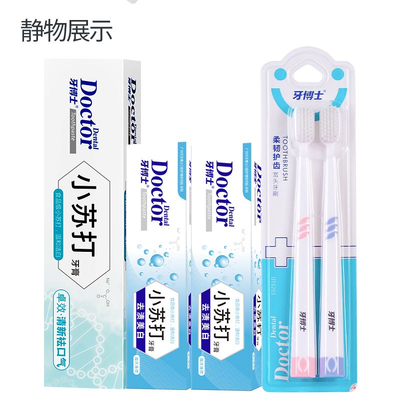 卓效清新祛口气牙膏120g+小苏打去渍美白牙膏40g*2+柔韧护齿宽头牙刷*2