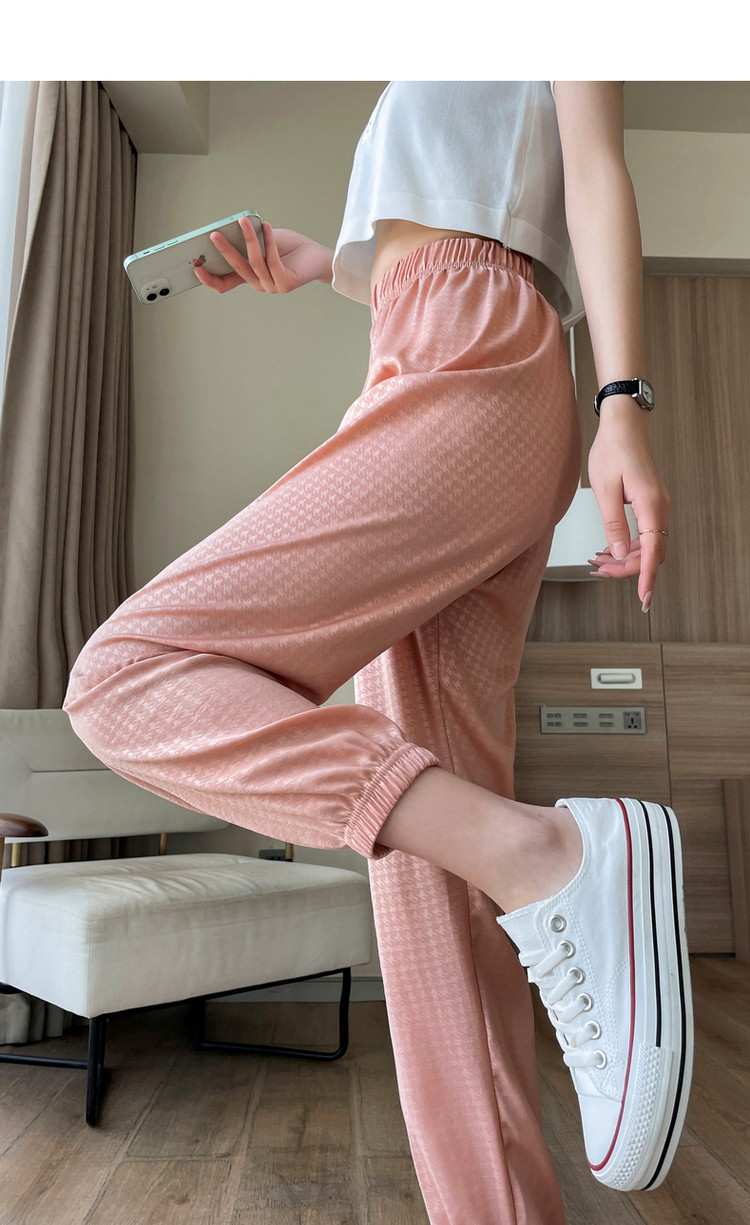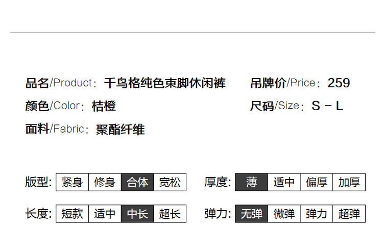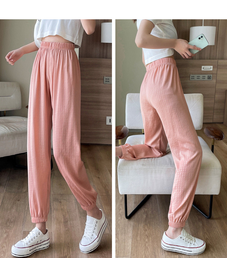 商品名称:【千鸟格束脚裤】夏季中腰松紧女裤薄款裤子女休闲裤 778753