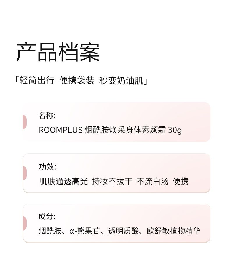 商品名称:英国ROOM PLUS 烟酰胺焕彩身体素颜霜30g