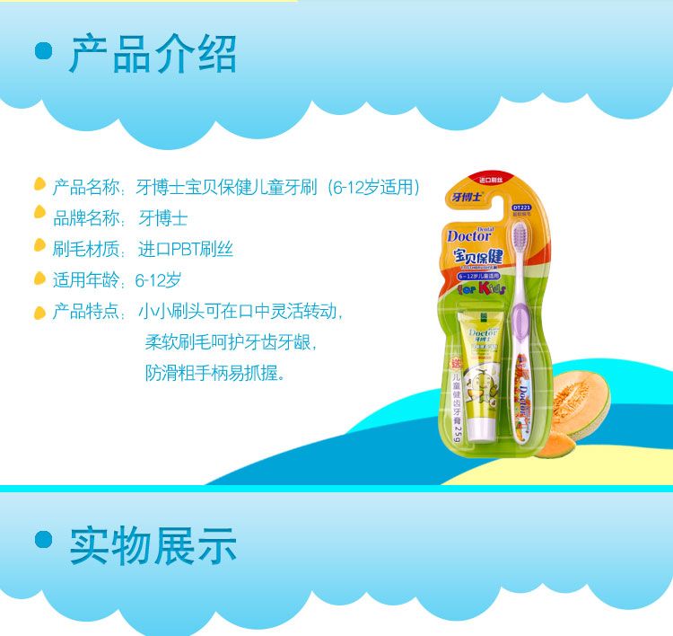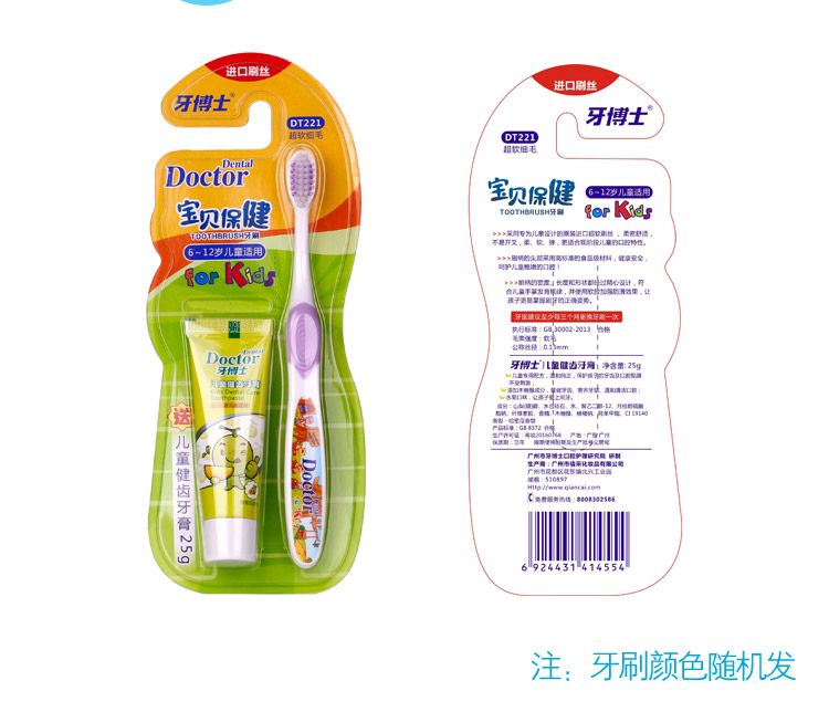 商品名称:【4支】牙博士宝贝保健儿童(超细软毛)牙刷6-12岁适用儿童牙刷1支装*4支 DT221