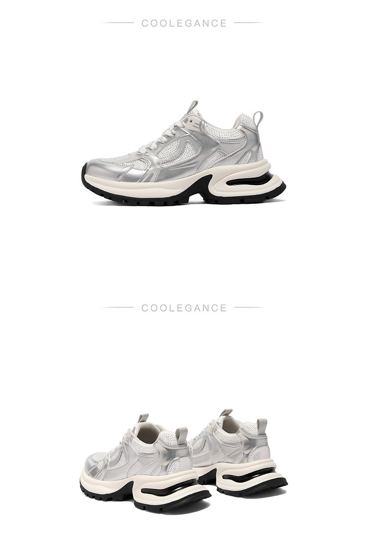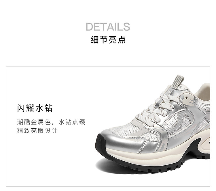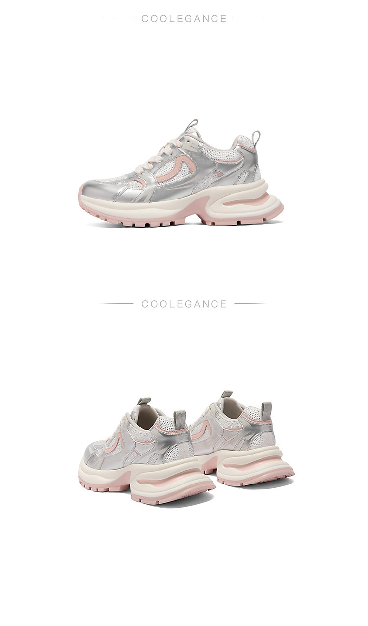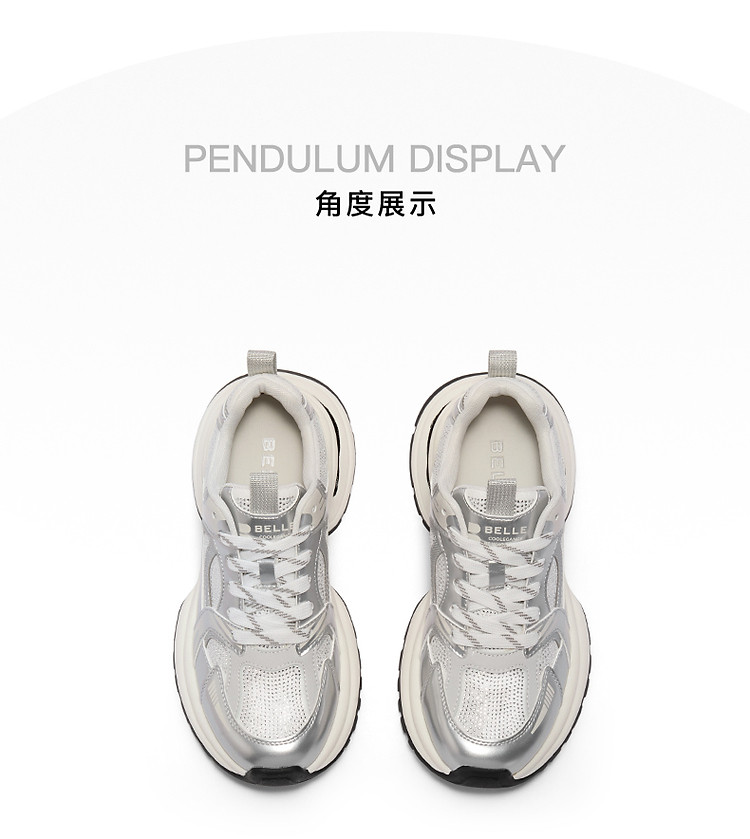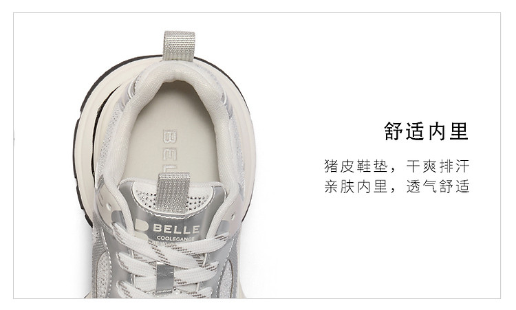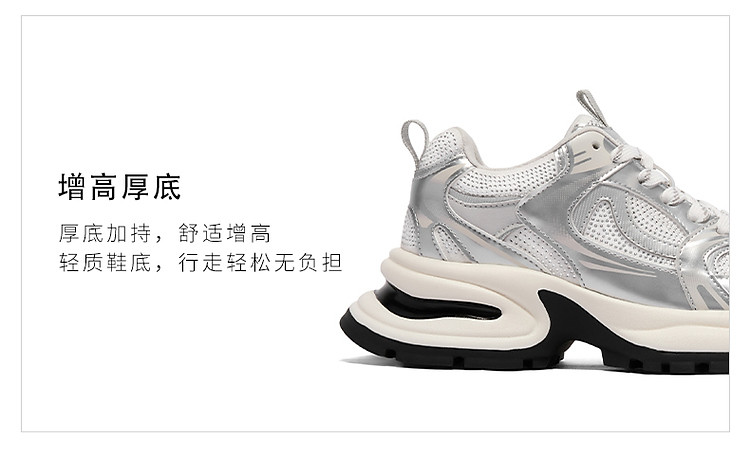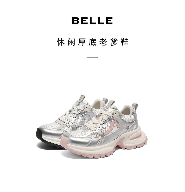 百丽女鞋子厚底灰粉色休闲鞋女款运动鞋银色老爹鞋 471706
