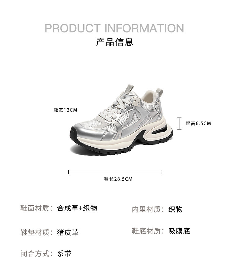 商品名称:百丽女鞋子厚底灰粉色休闲鞋女款运动鞋银色老爹鞋 471706