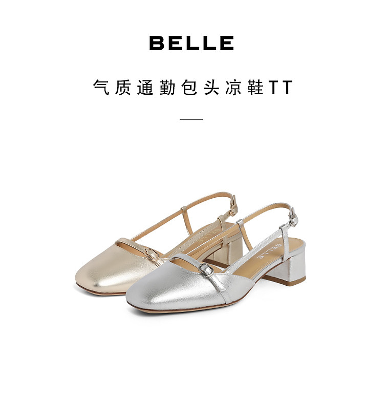 【爆款推荐】百丽包头凉鞋女鞋春夏玛丽珍粗高跟鞋单鞋子 939354