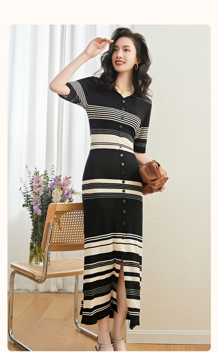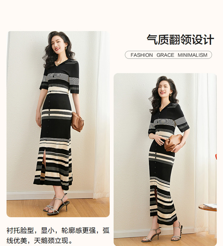 商品名称:【法式条纹针织长裙】23夏新气质名媛高端女神范高级感连衣裙女 965953