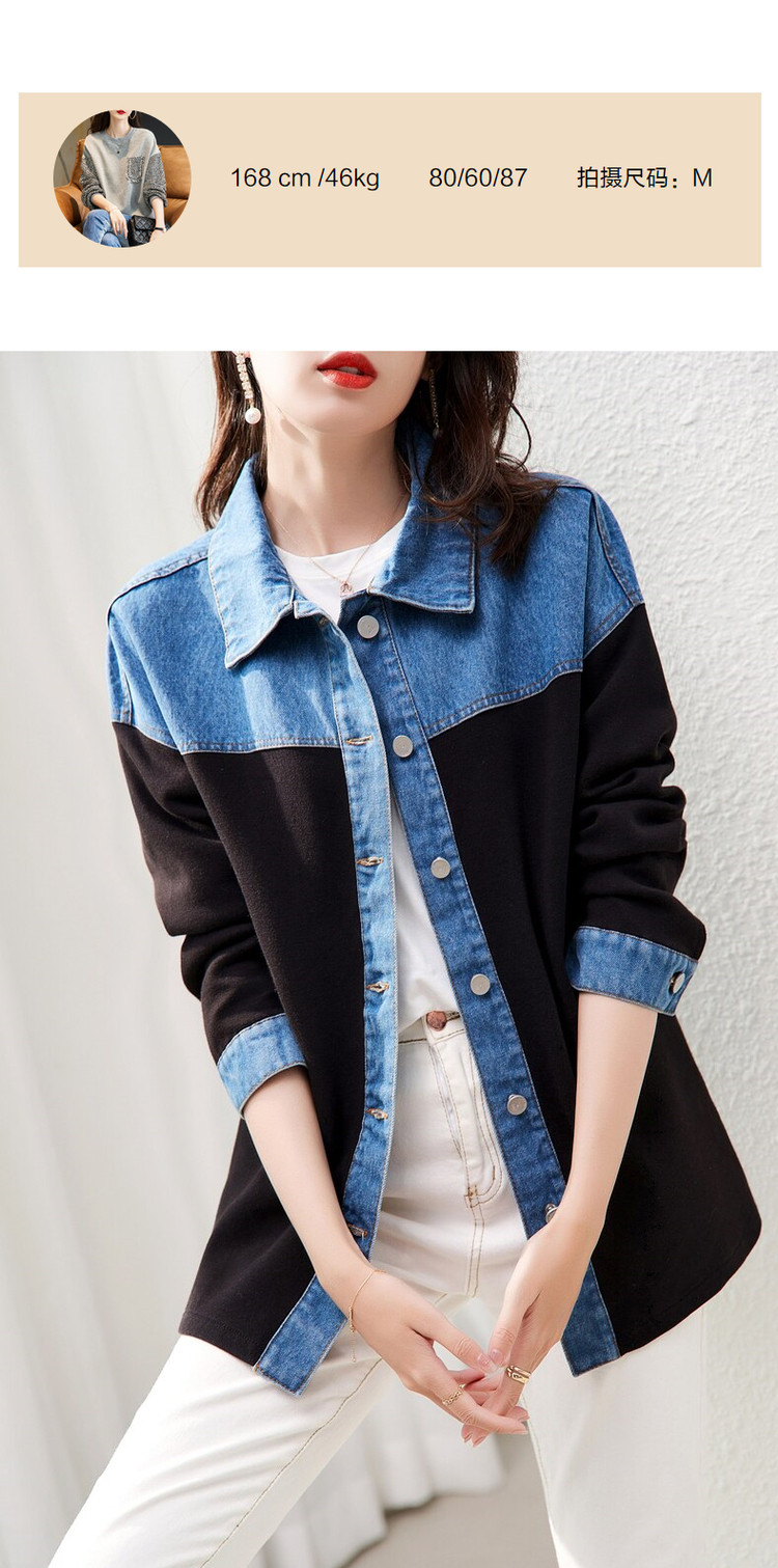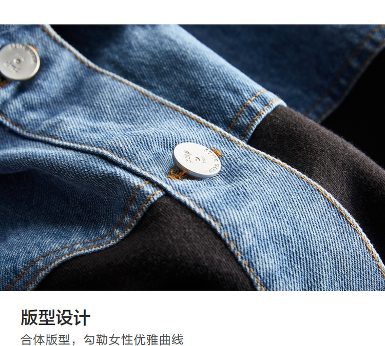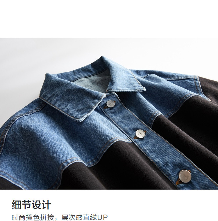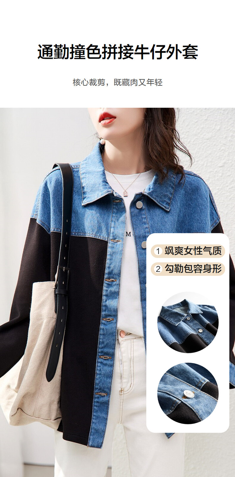 商品名称:【牛仔计划】春秋男友风呼吸感云朵棉活力撞色拼接舒适女牛仔外套 914625