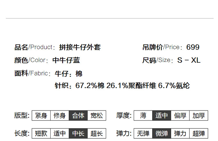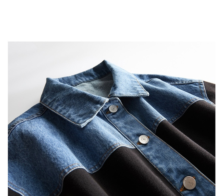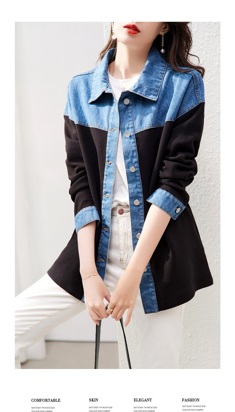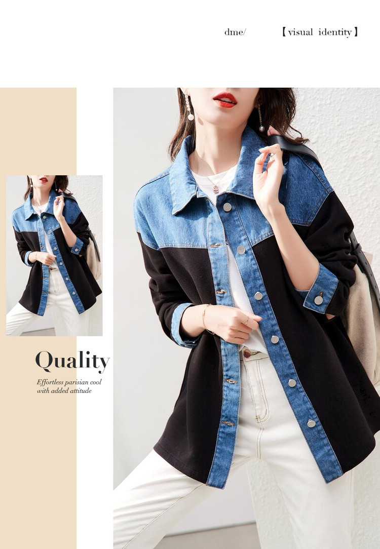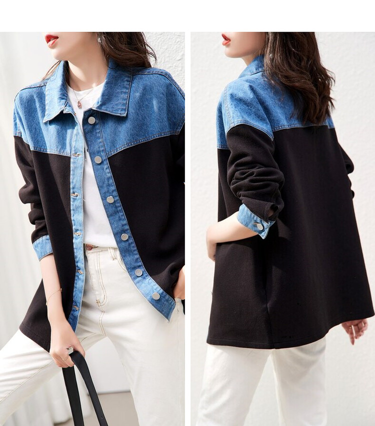 商品名称:【牛仔计划】春秋男友风呼吸感云朵棉活力撞色拼接舒适女牛仔外套 914625