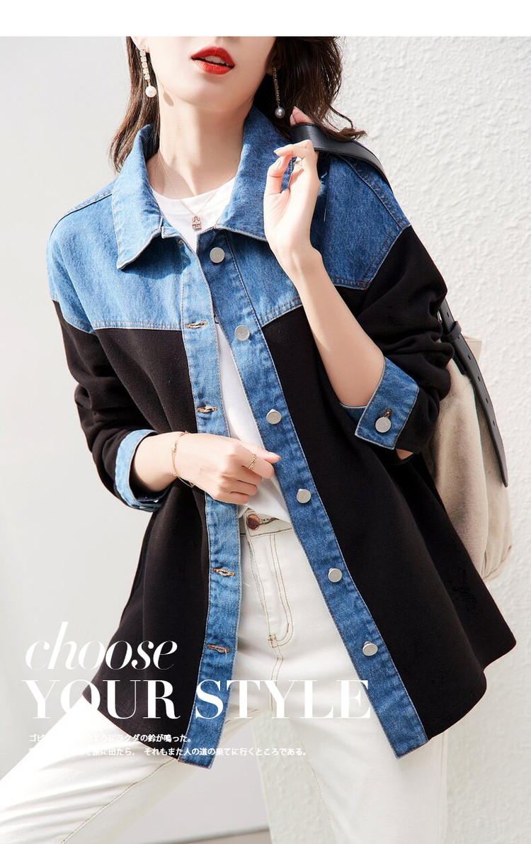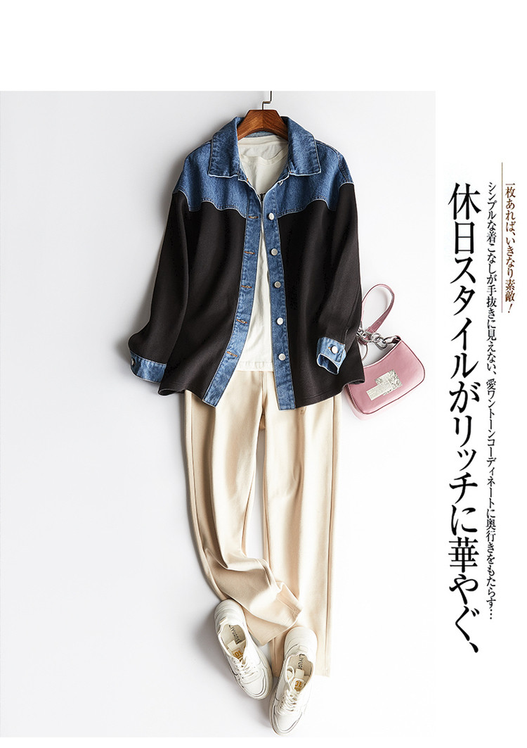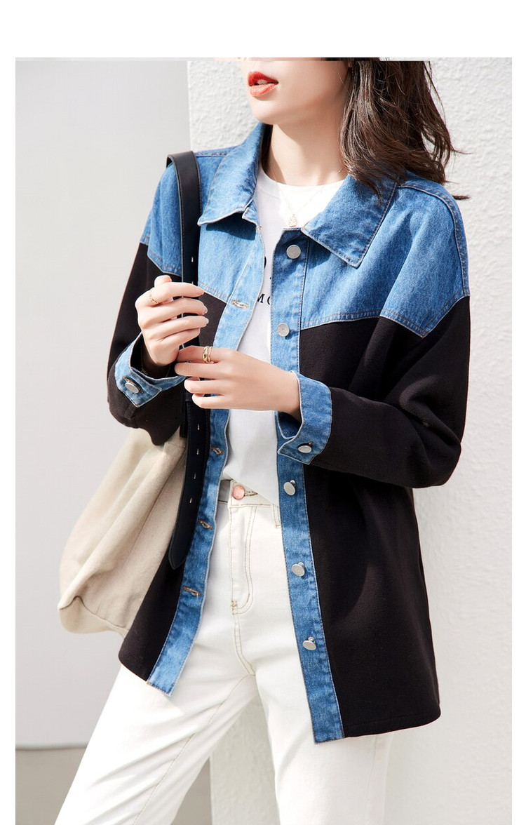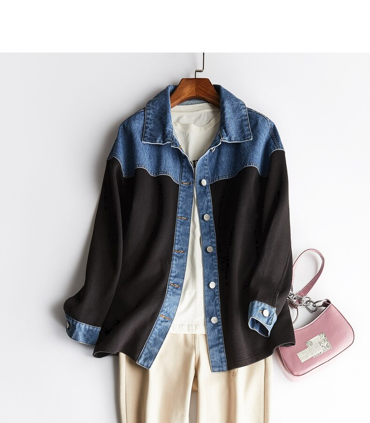 【牛仔计划】春秋男友风呼吸感云朵棉活力撞色拼接舒适女牛仔外套 914625
