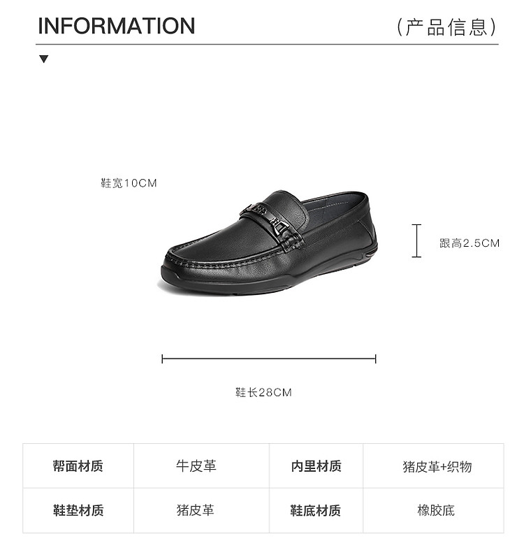 商品名称:百丽男鞋一脚蹬休闲鞋男春季牛皮革舒适套脚豆豆鞋休闲皮鞋 284250