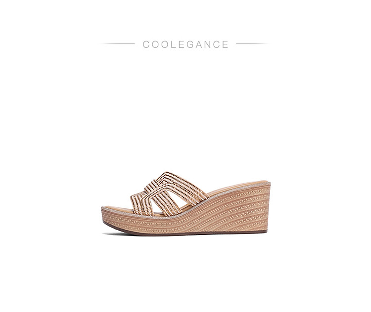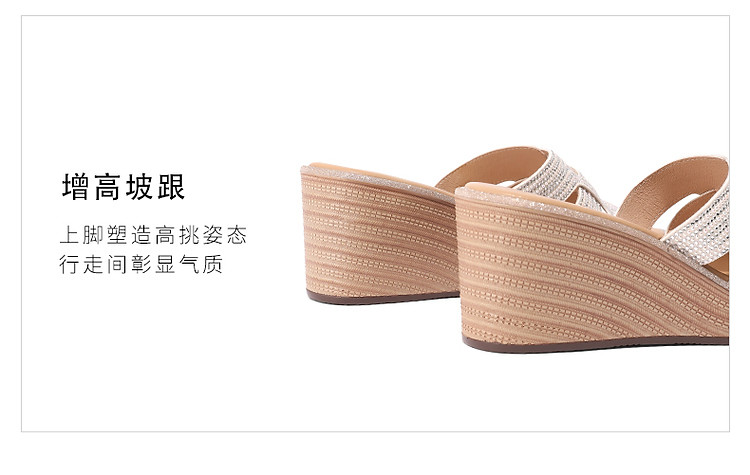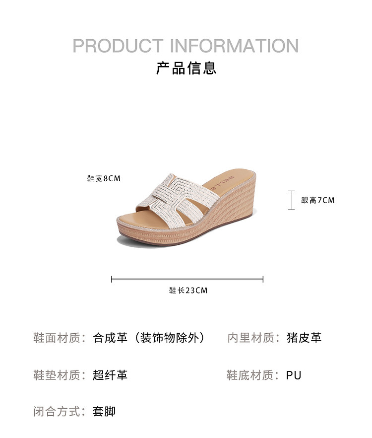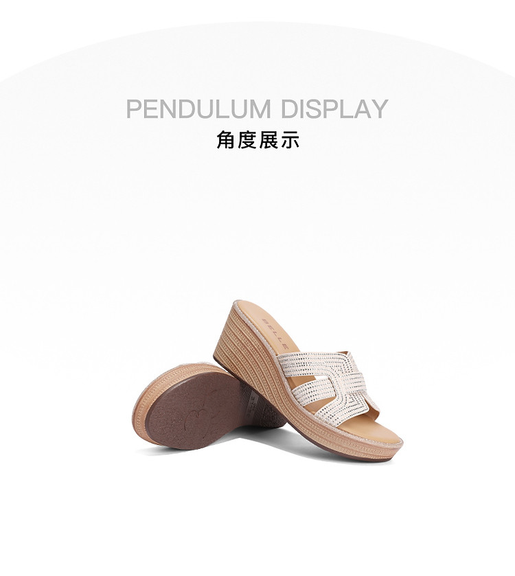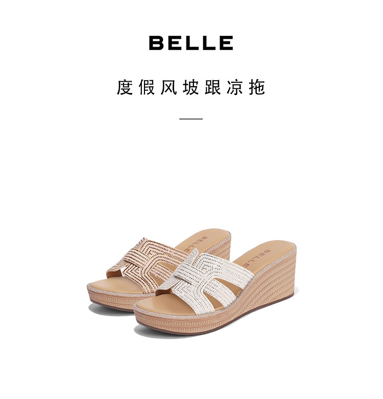 商品名称:【尖货推荐】百丽坡跟一字拖鞋女鞋夏新舒适妈妈鞋外穿沙滩凉拖 744410