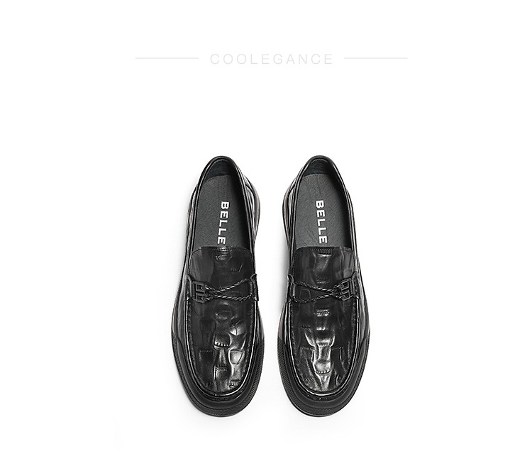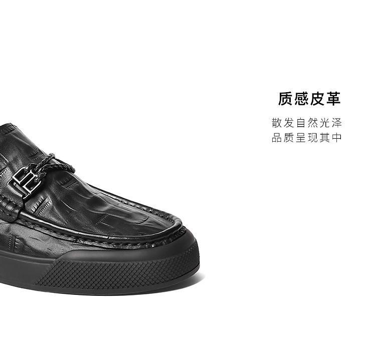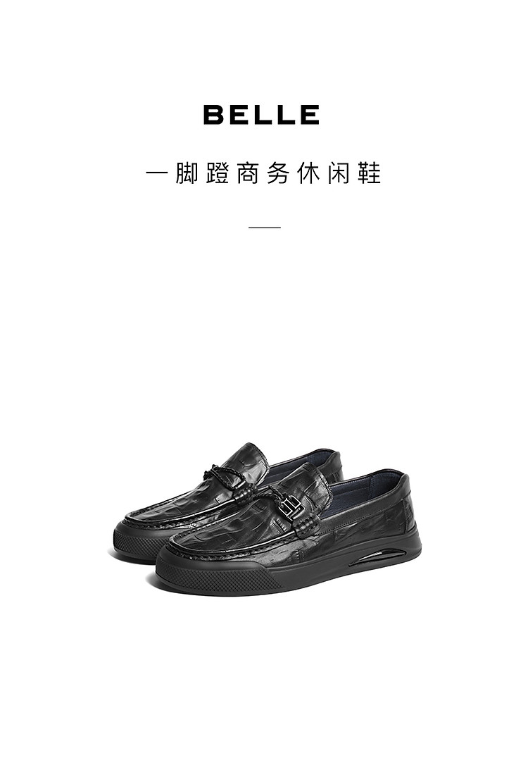 百丽男鞋商务皮鞋一脚蹬休闲皮鞋男套脚豆豆乐福鞋子 050906