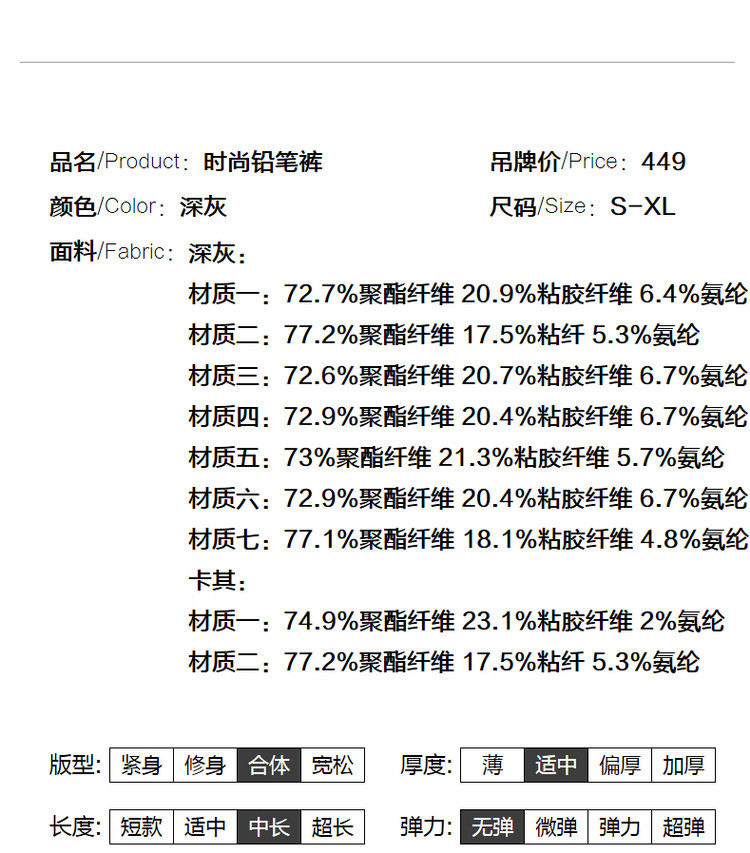 商品名称:【烟管裤】春秋季简约时尚女裤气质休闲裤女春秋 862273