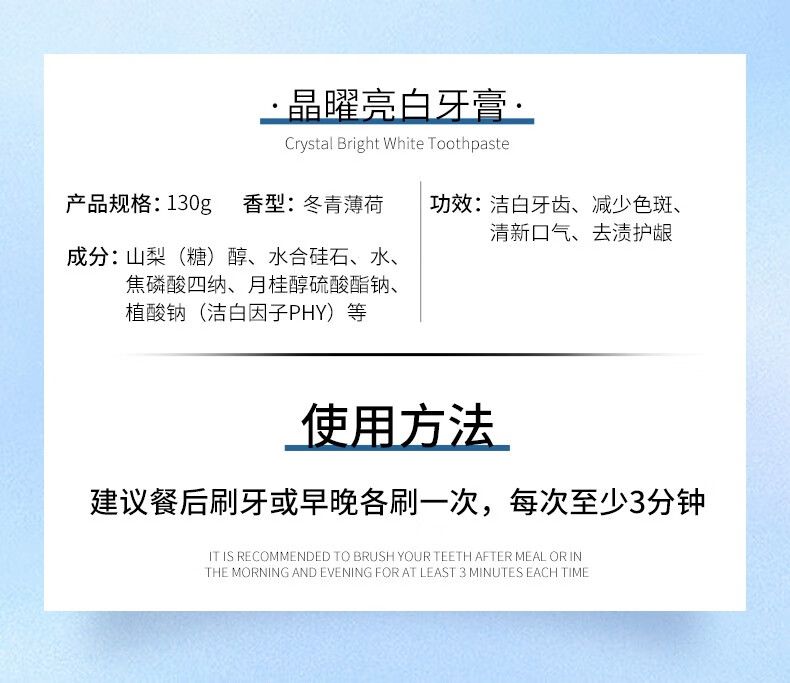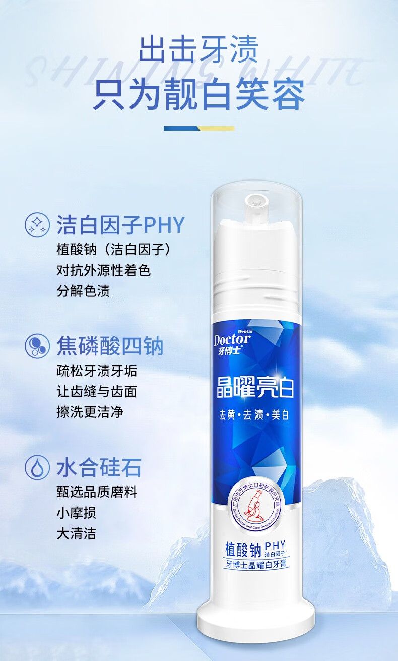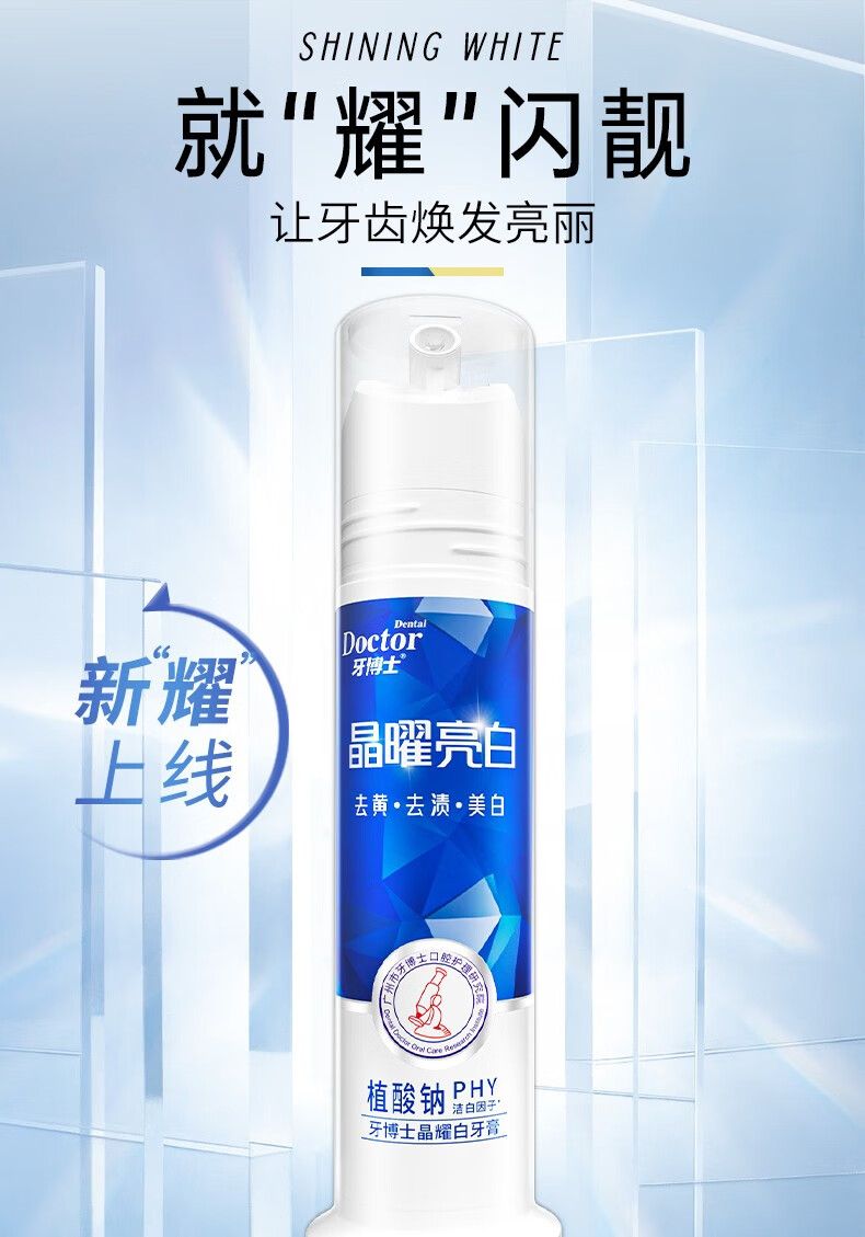 商品名称:牙博士晶曜亮白压泵装牙膏130g