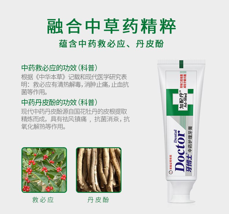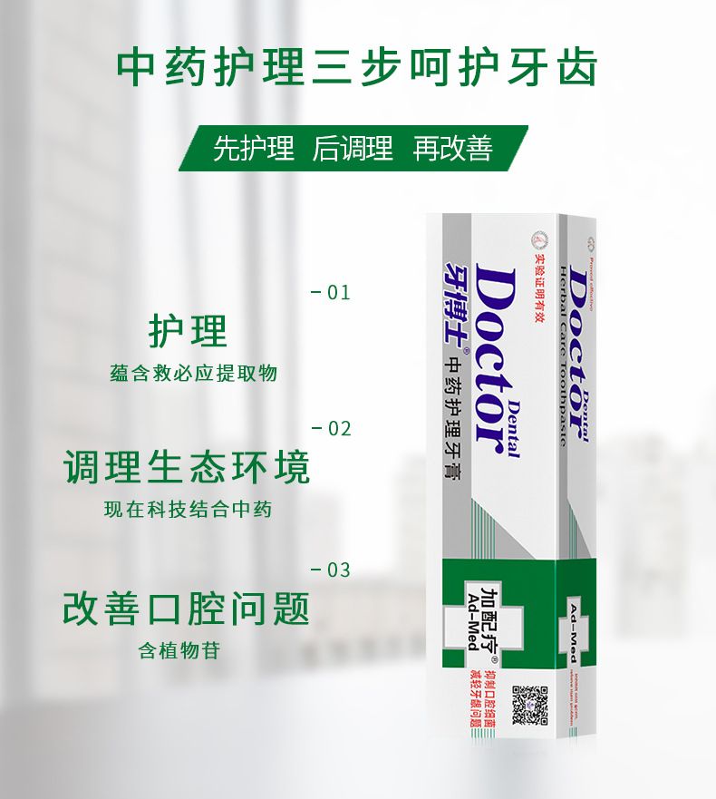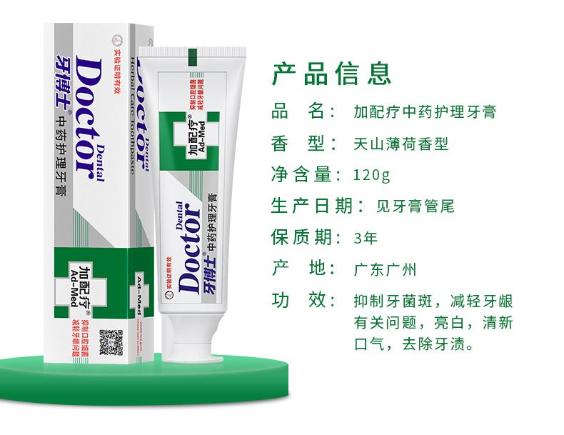 商品名称:牙博士 加配疗中药护理牙膏 120g