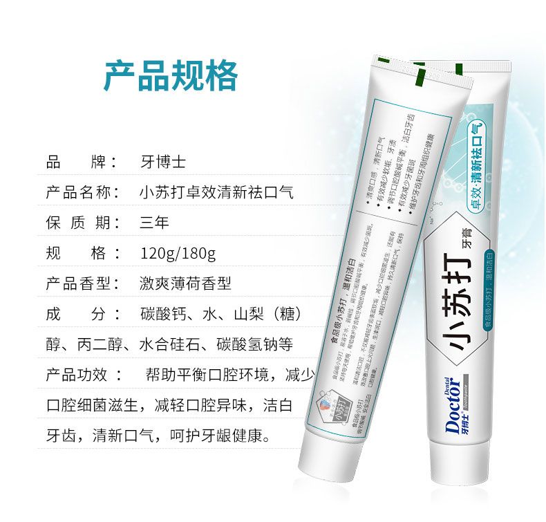 商品名称:牙博士小苏打卓效清新袪口气牙膏180g