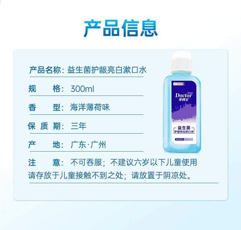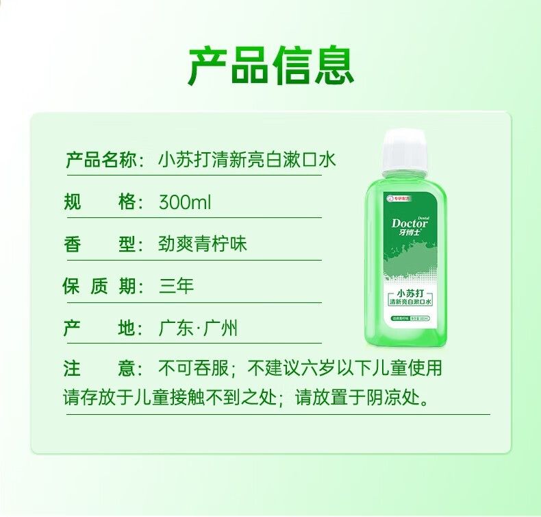 商品名称:牙博士 小苏打清新亮白漱口水300ml