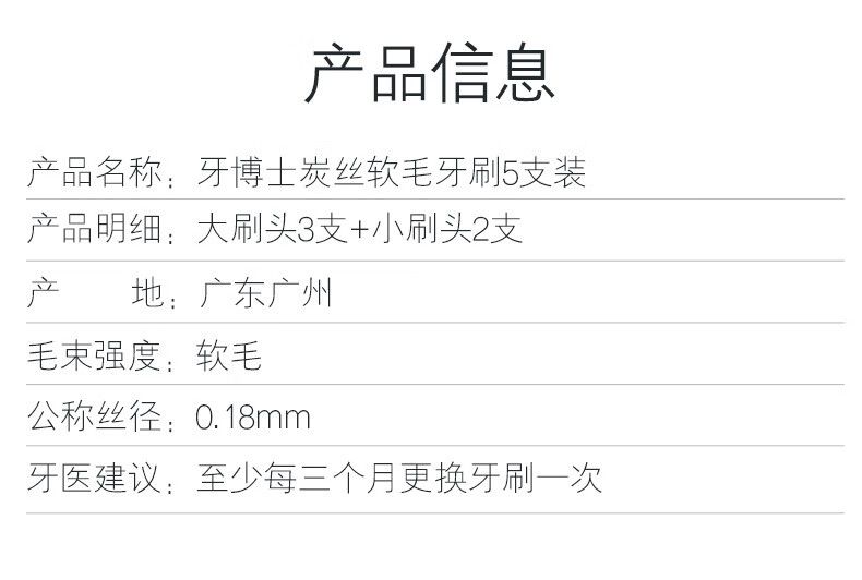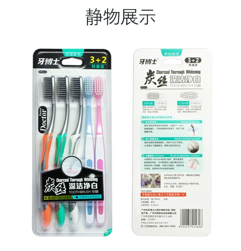 商品名称:【5支装】牙博士炭丝深洁净白牙刷5支装 DT3+2