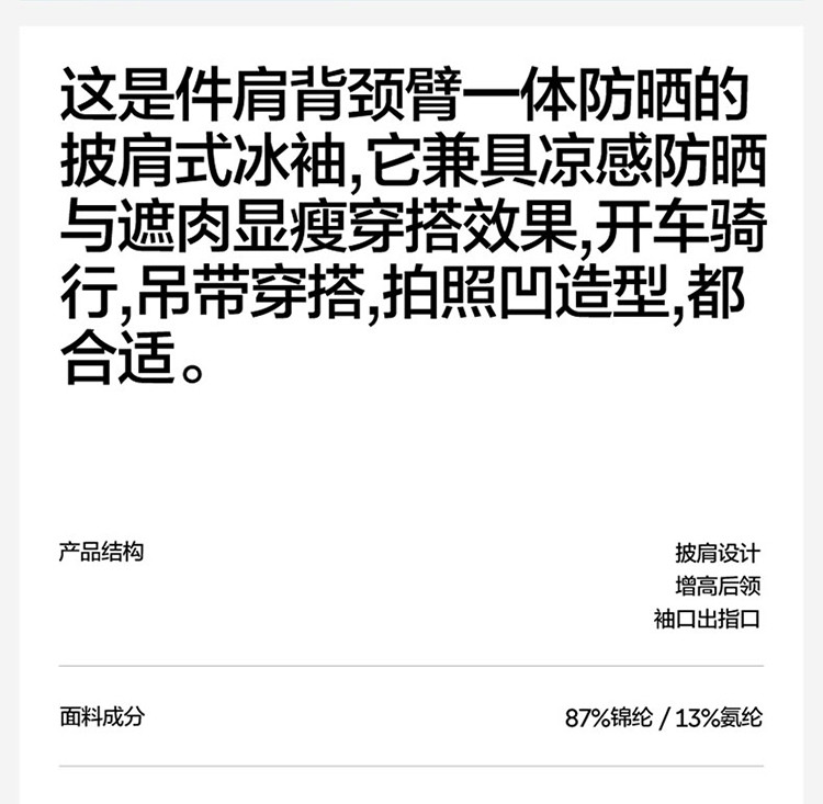 商品名称:502UV Pro防晒披肩冰袖女款防紫外线夏季骑行护手臂防晒 087173