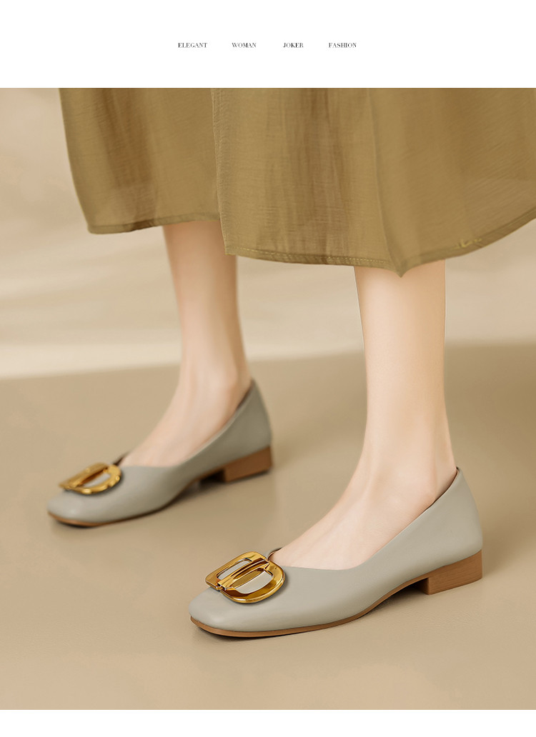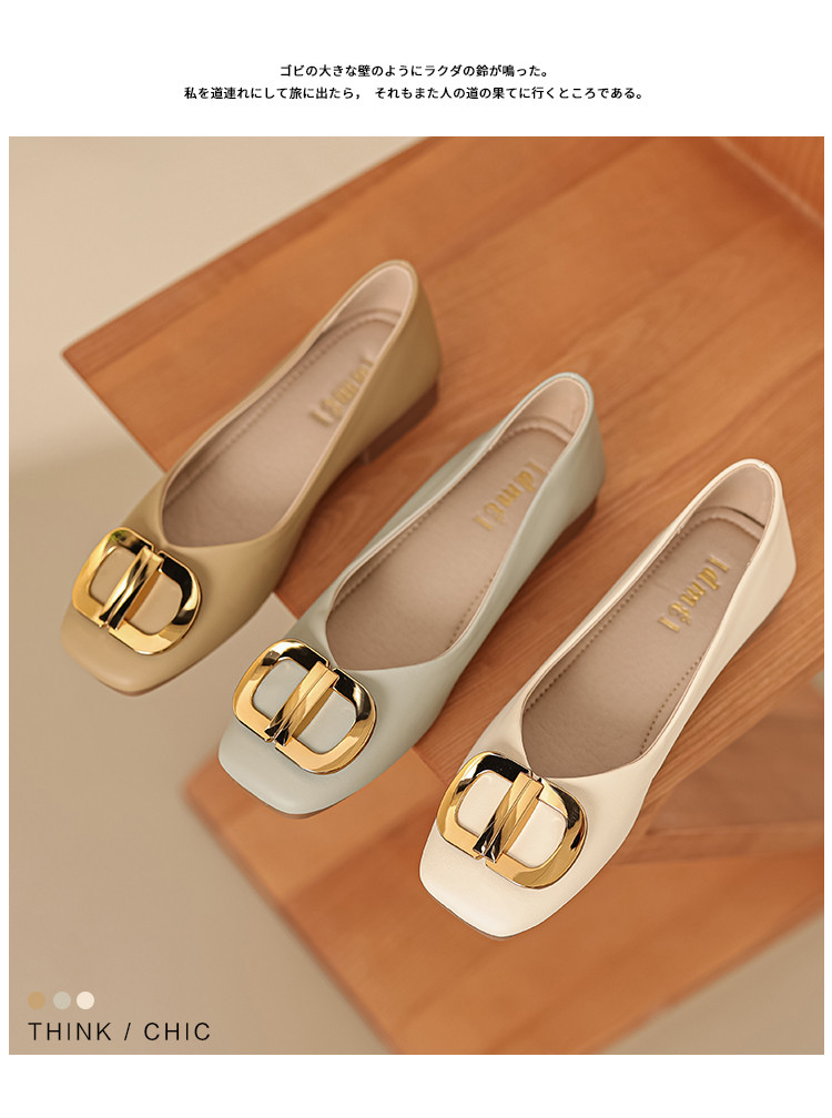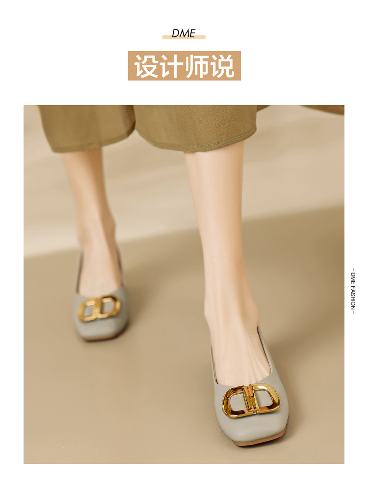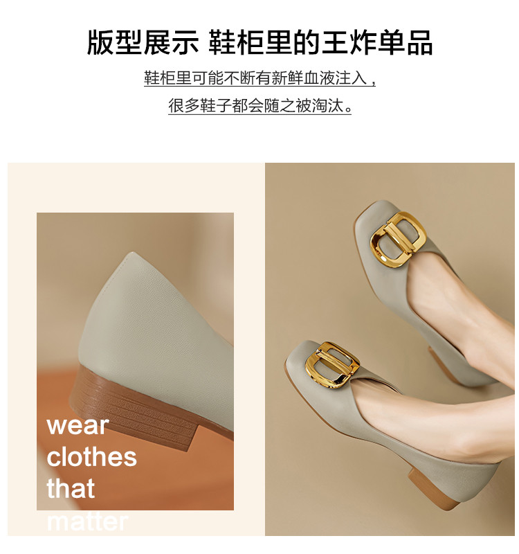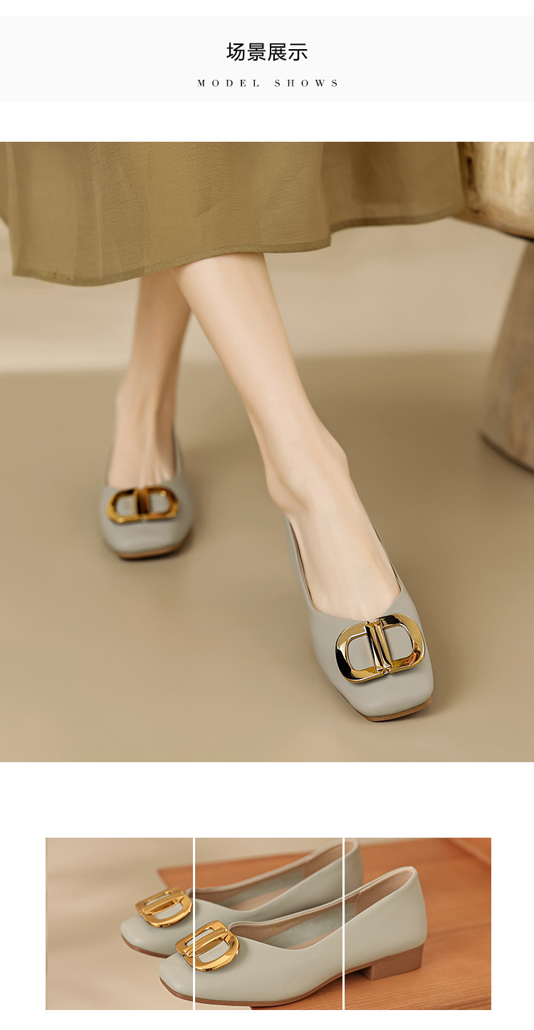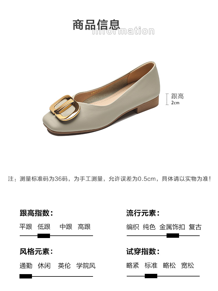 商品名称:春简约时尚金属扣软面方头单鞋 284545