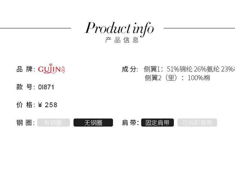 商品名称:【捡漏款】纯棉透气薄杯可拆肩带无钢圈聚拢上托收副乳内衣文胸罩 157835