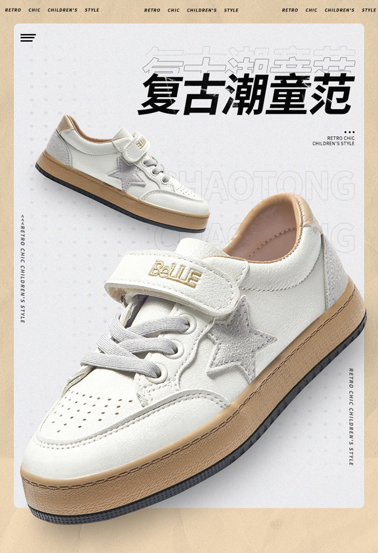 儿童小白鞋女童鞋男中大童跑步休闲板鞋女童百搭滑板鞋德训鞋女童 724683
