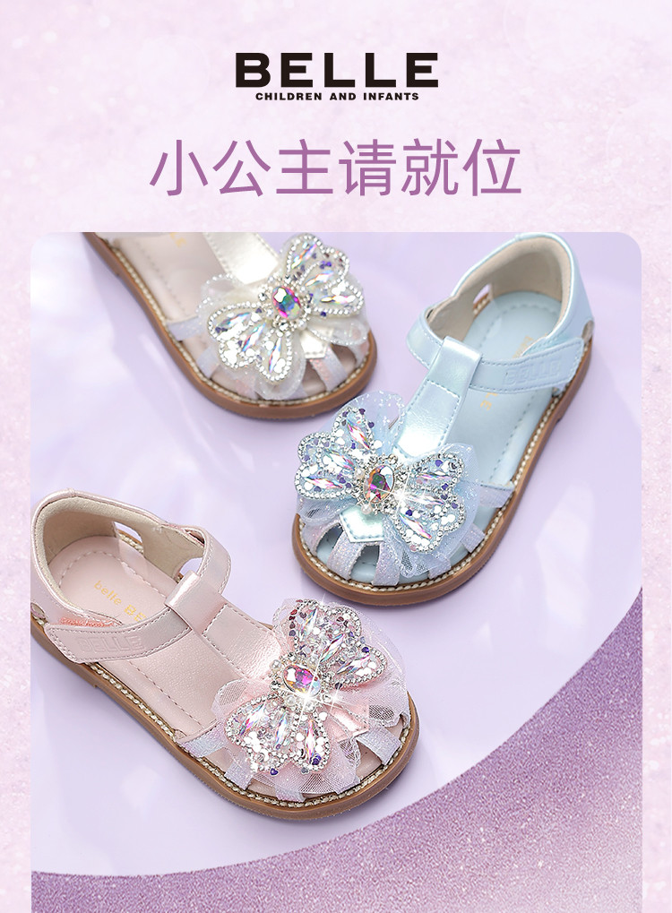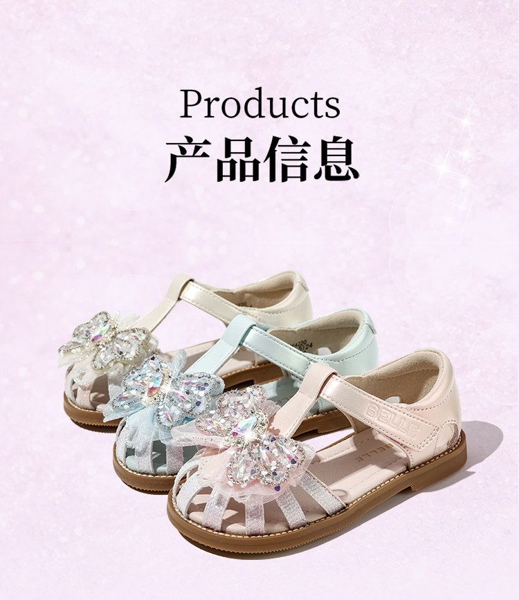 商品名称:【仙境小蝴蝶公主凉鞋】夏季女童凉鞋透气校园百搭包头闪钻全凉鞋 394059