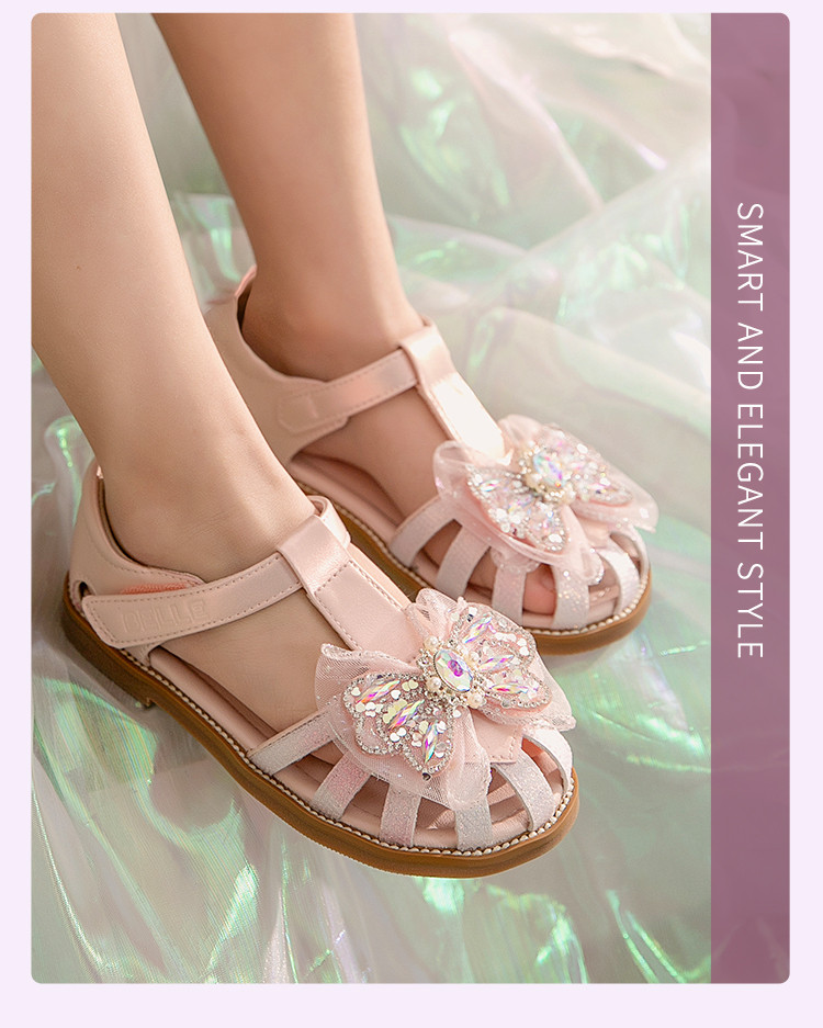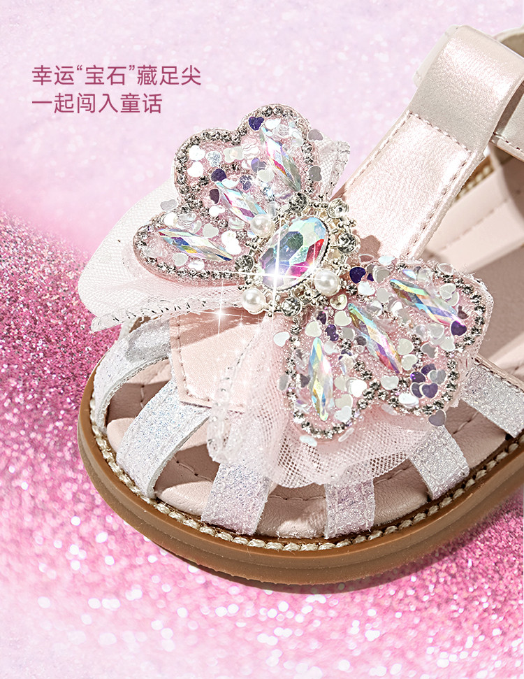 【仙境小蝴蝶公主凉鞋】夏季女童凉鞋透气校园百搭包头闪钻全凉鞋 394059