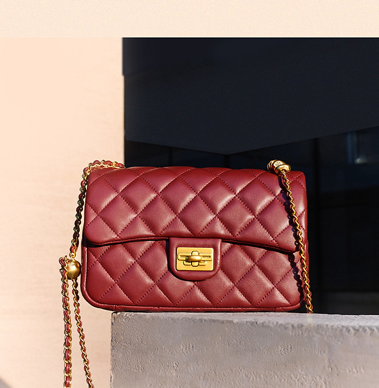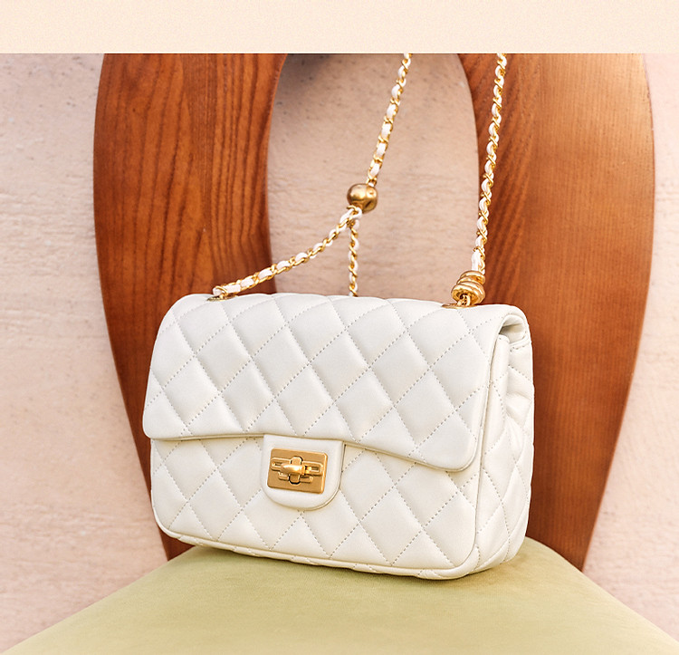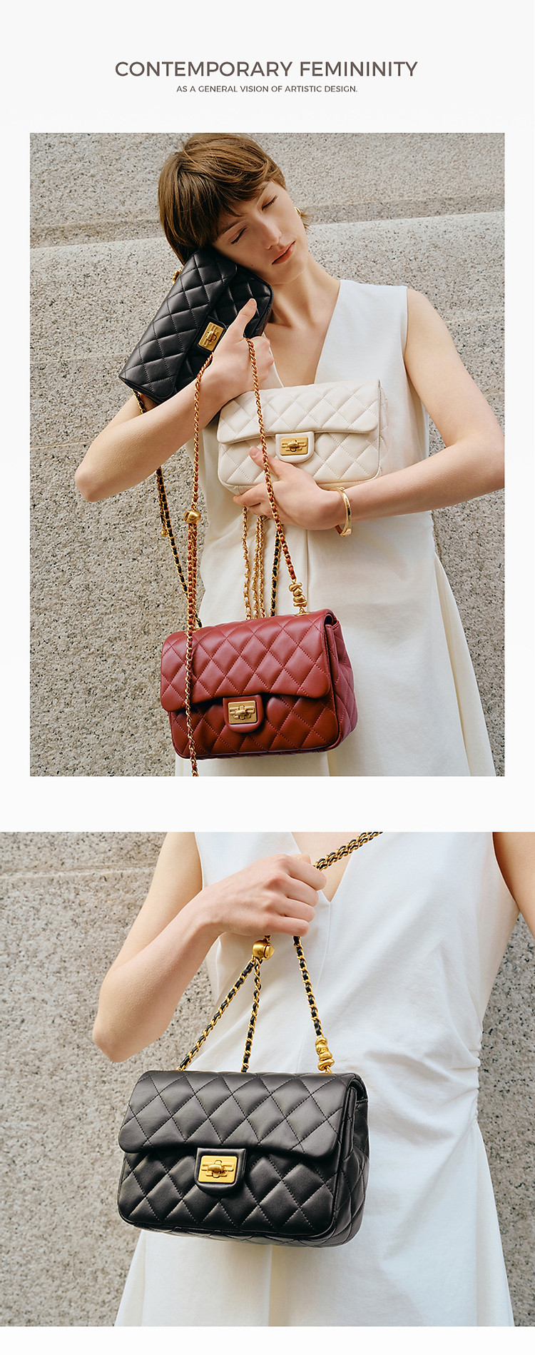 【优雅千金】百丽春夏羊皮菱格链条小香风百搭小方包 428506