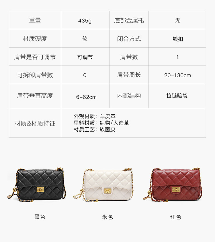 商品名称:【优雅千金】百丽春夏羊皮菱格链条小香风百搭小方包 428506