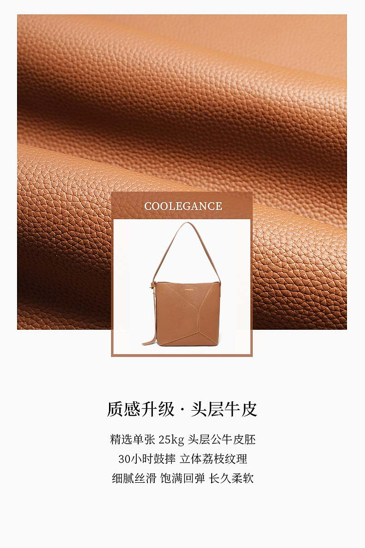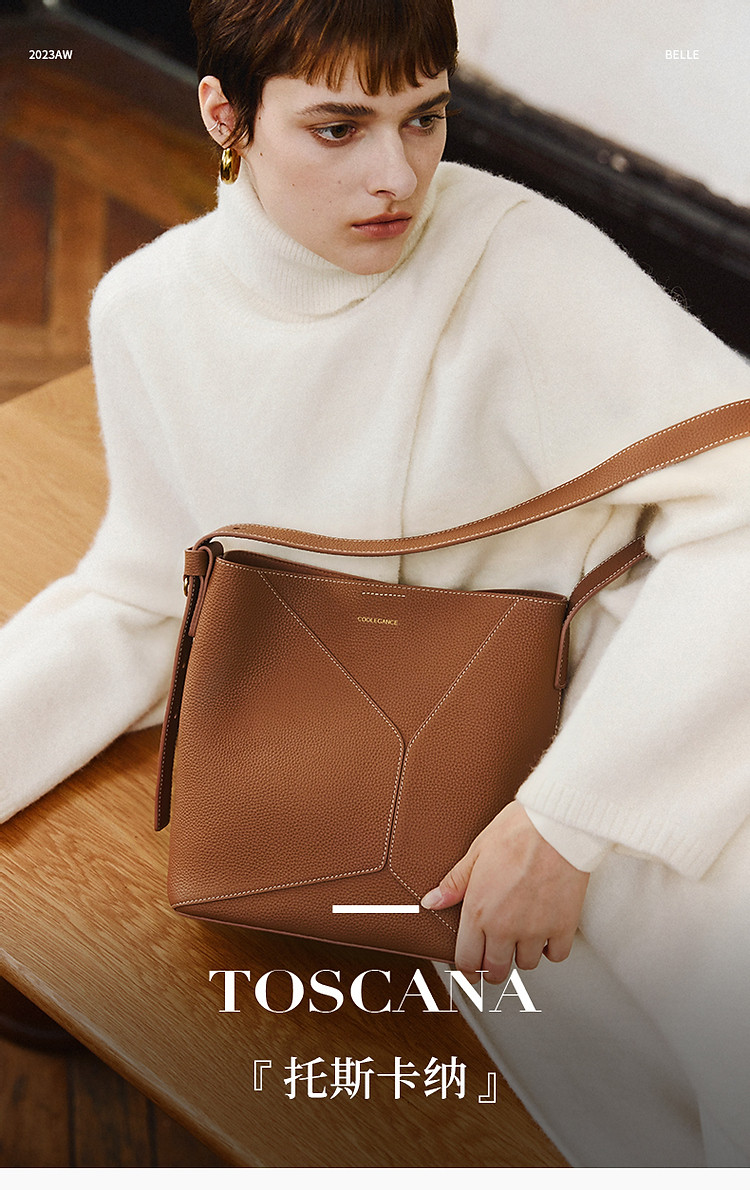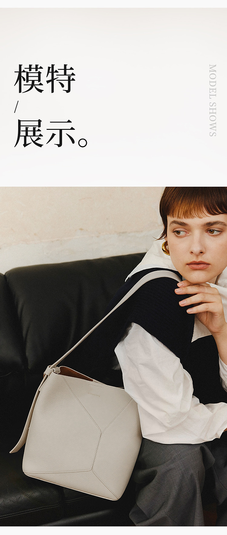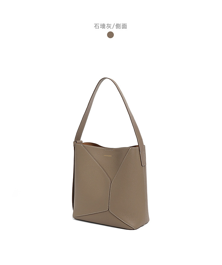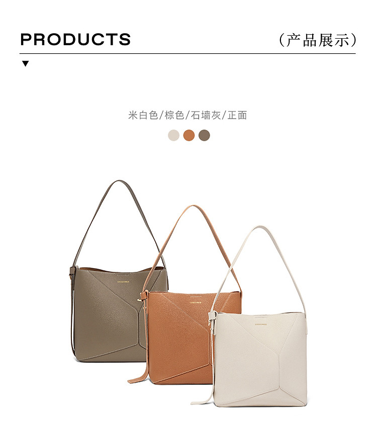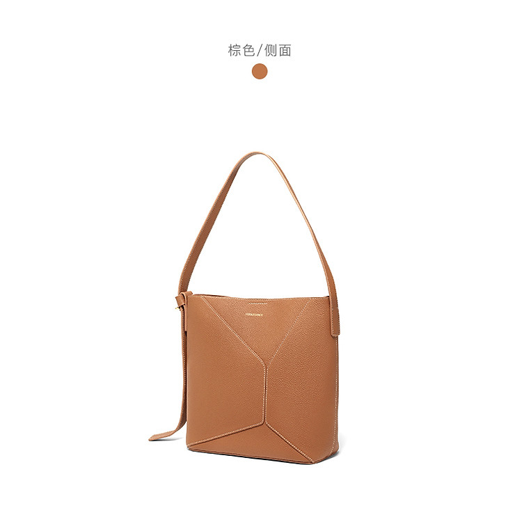 商品名称:【托斯卡纳系列】百丽简约几何单肩腋下包牛皮荔枝纹理通勤水桶包 707226
