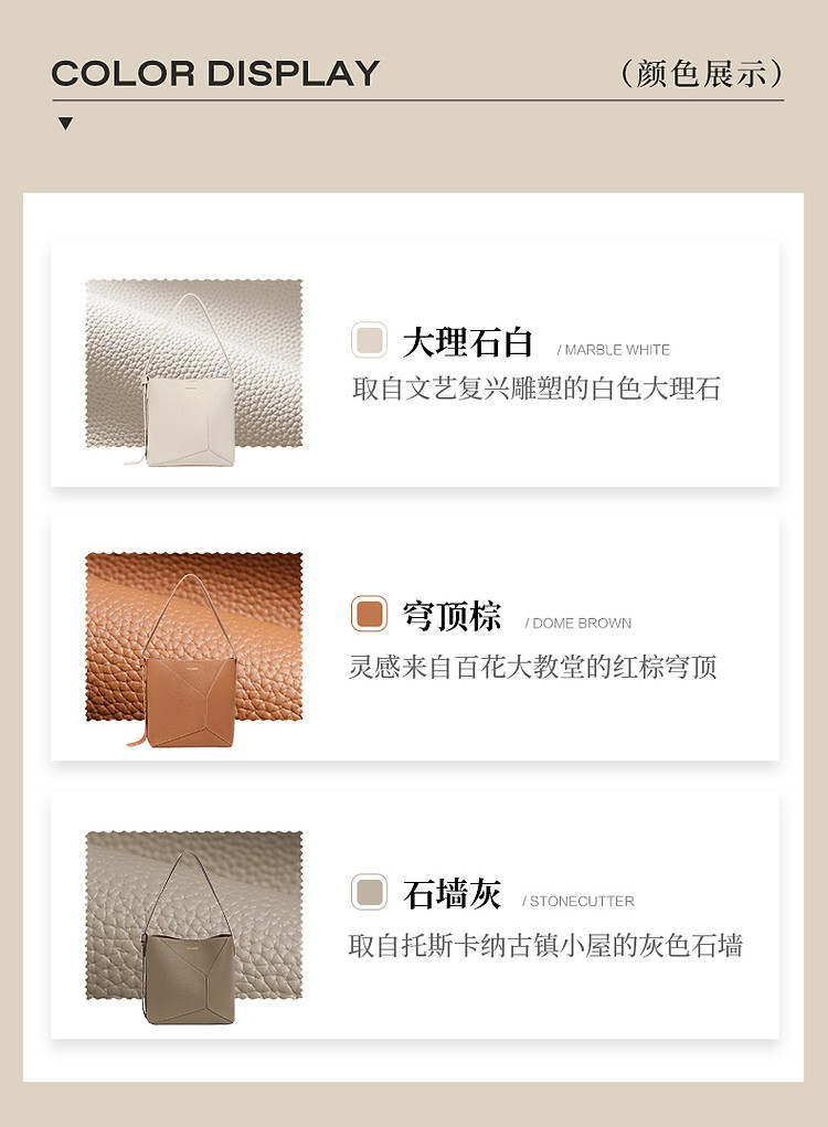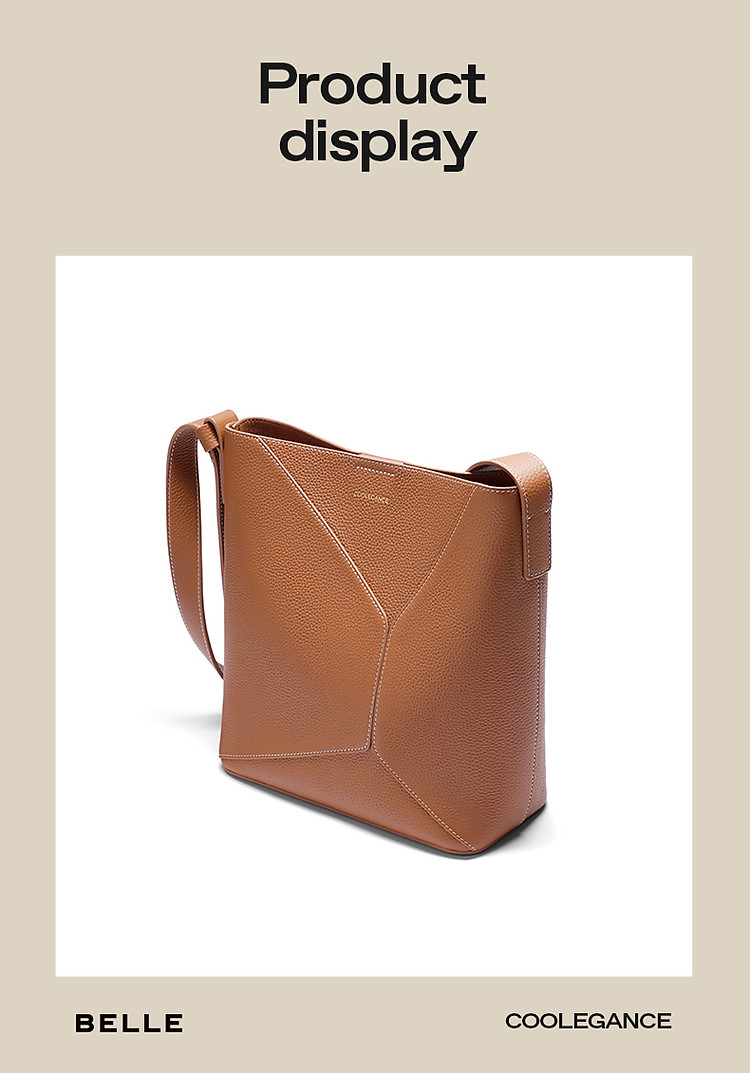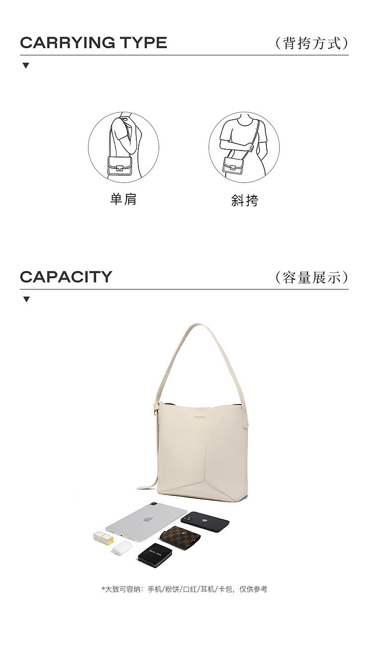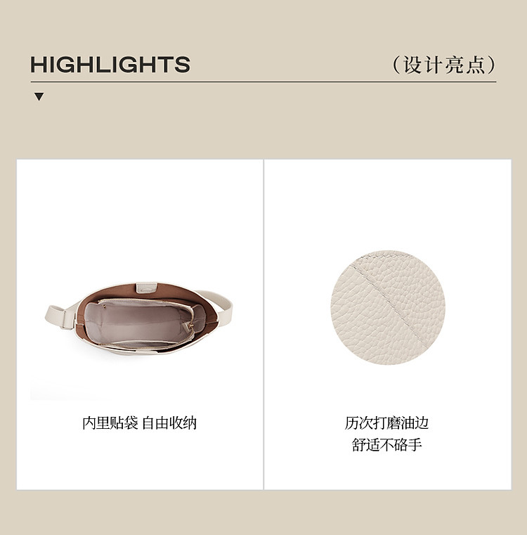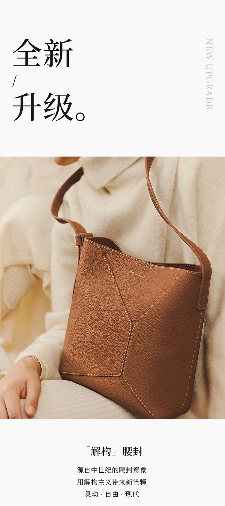 商品名称:【托斯卡纳系列】百丽简约几何单肩腋下包牛皮荔枝纹理通勤水桶包 707226
